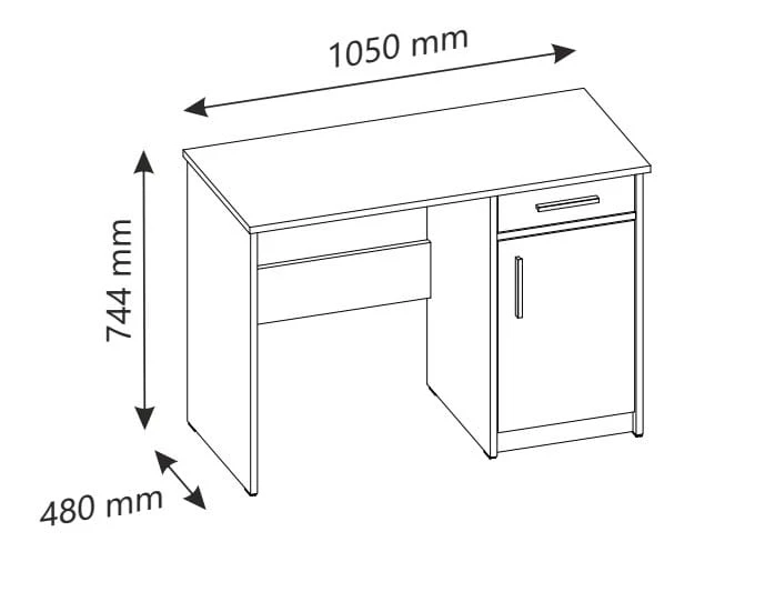 Biurko 105 cm zapewnia dużą powierzchnię użytkową, która pozwala na wygodne wykonywanie codziennych obowiązków, pracę przy komputerze oraz naukę. Większy blat ułatwia organizację przestrzeni i zwiększa komfort pracy nawet przez dłuższy czas.