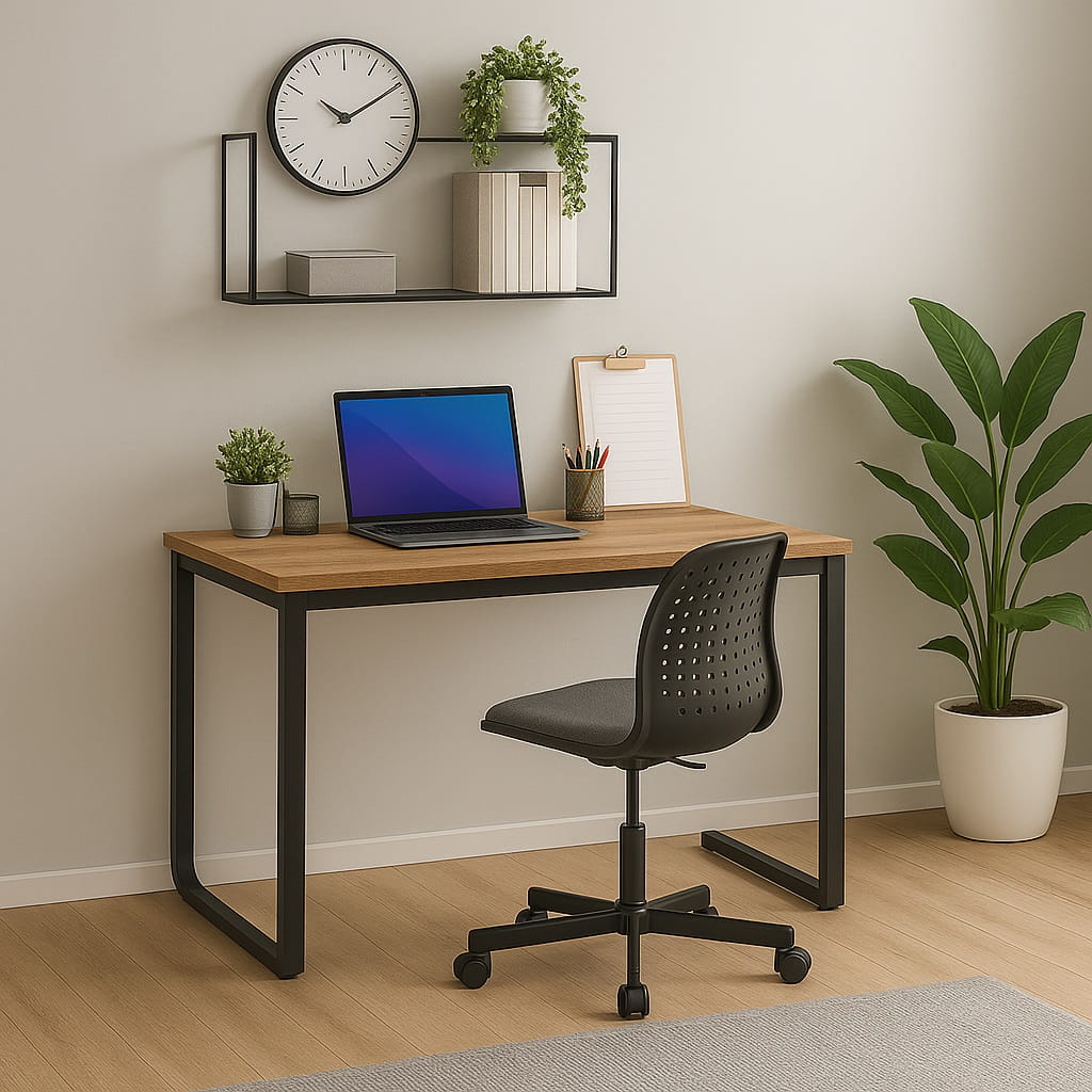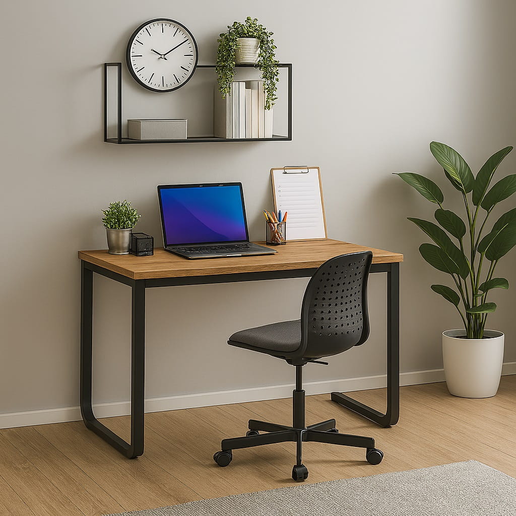 Połączenie solidnego blatu z metalową konstrukcją sprawia, że biurko komputerowe LOFT wyróżnia się nowoczesnym wyglądem oraz wysoką stabilnością, idealnie wpisując się w industrialne i minimalistyczne wnętrza.