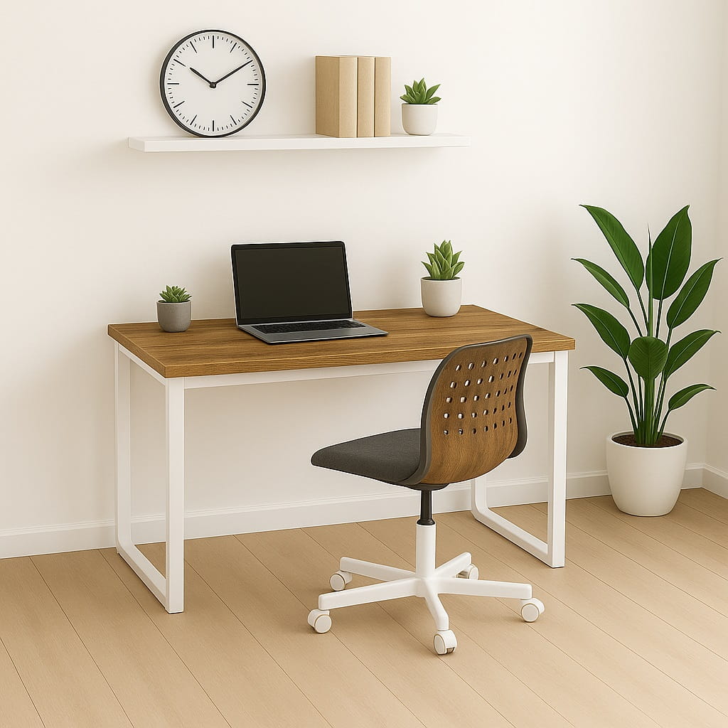 Możliwość wyboru koloru płyty oraz wariantu stelaża pozwala stworzyć biurko dopasowane do wnętrza, które idealnie wpisze się w styl pomieszczenia oraz indywidualne preferencje użytkownika.