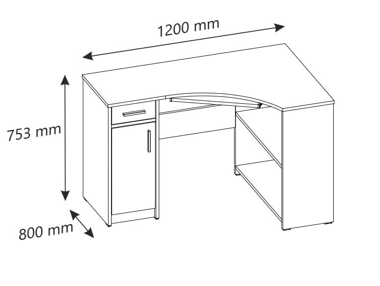 Biurko narożne komputerowe 120 cm z półką na klawiaturę | ArtDHome