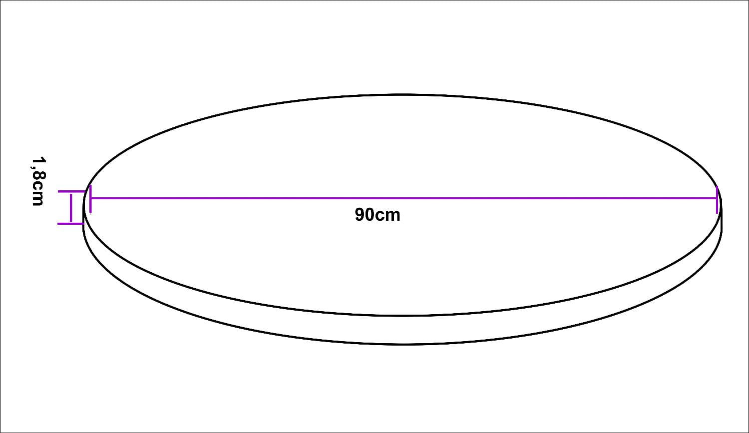 Wykonany z płyty laminowanej o grubości 18 mm, blat stołowy 90 cm gwarantuje wygodę użytkowania oraz odpowiednią trwałość. Duża średnica pozwala na komfortowe korzystanie przez kilka osób jednocześnie.