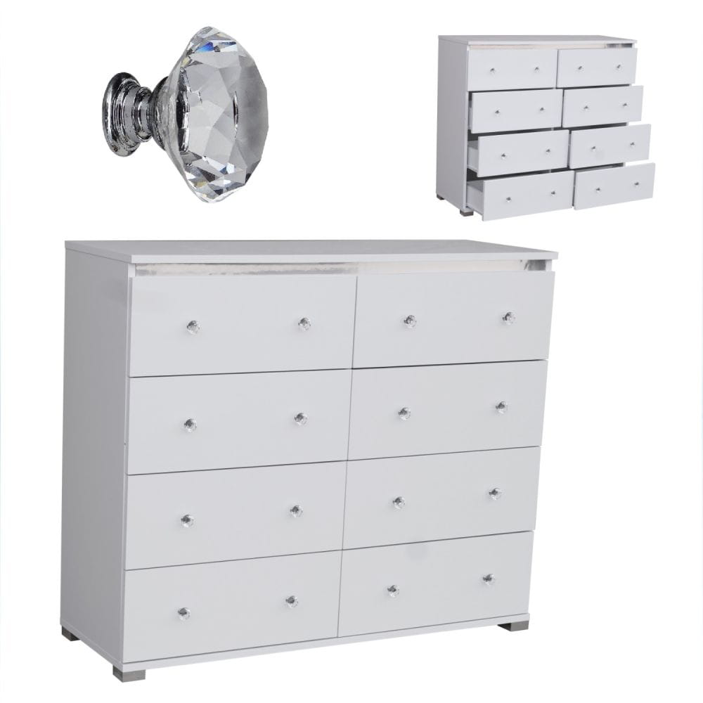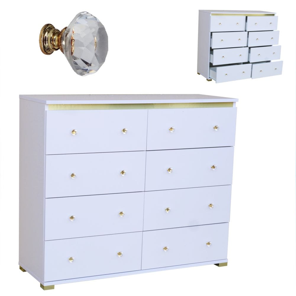Komoda Glamour 119 cm z 8 szufladami, elegancka z uchwytami diamentowymi | ArtDHome