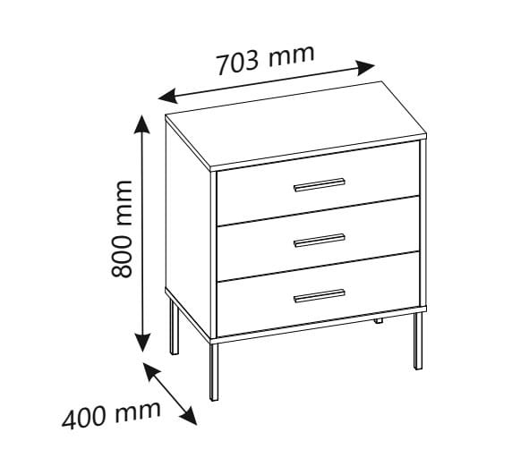 Komoda z szufladami 70 cm została wyposażona w trzy pojemne szuflady, które pozwalają na wygodne przechowywanie ubrań, dokumentów, akcesoriów czy innych niezbędnych przedmiotów. Dzięki temu z łatwością utrzymasz porządek w swoim wnętrzu.