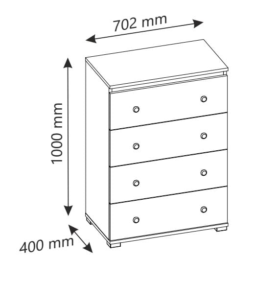Komoda z szufladami 70 cm została wyposażona w cztery przestronne szuflady, które zapewniają dużą ilość miejsca do przechowywania ubrań, dodatków czy dokumentów. To idealne rozwiązanie dla osób, które cenią porządek oraz wygodny dostęp do przechowywanych rzeczy.