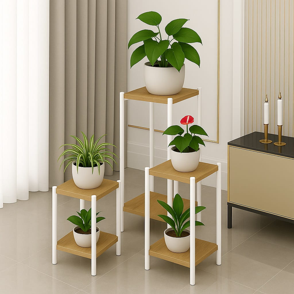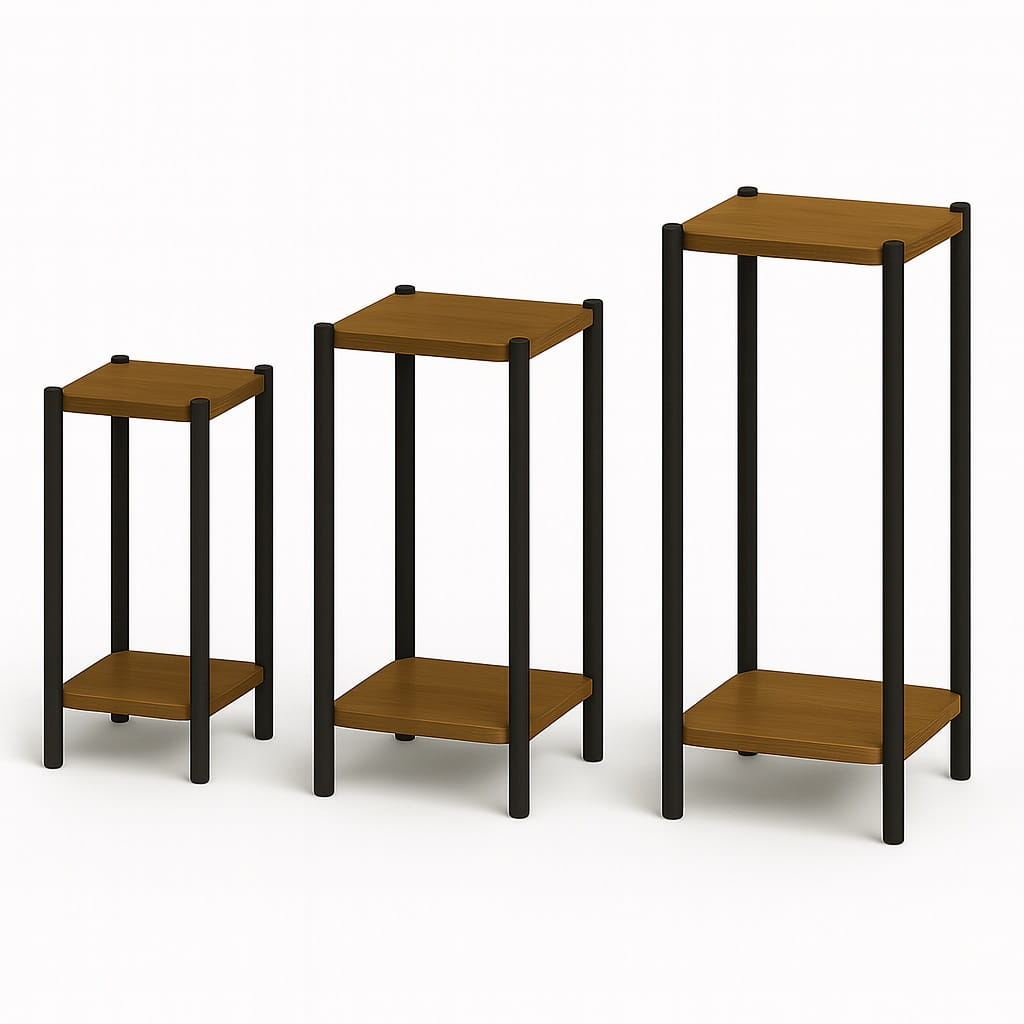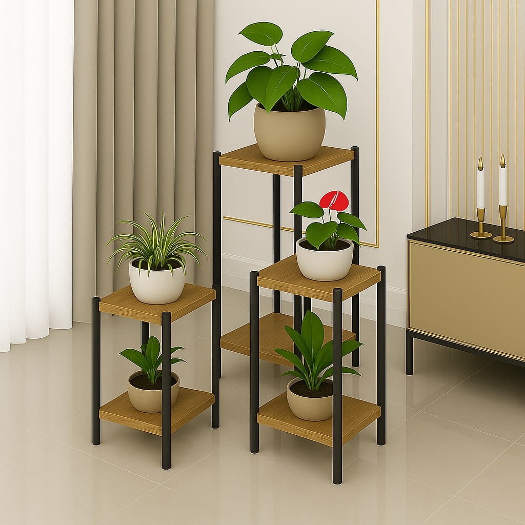 Połączenie kwadratowego blatu i metalowych nóg tworzy spójną, nowoczesną formę, która doskonale wpisuje się w styl industrialny i loftowy. Kwietnik może pełnić zarówno funkcję użytkową, jak i dekoracyjną.