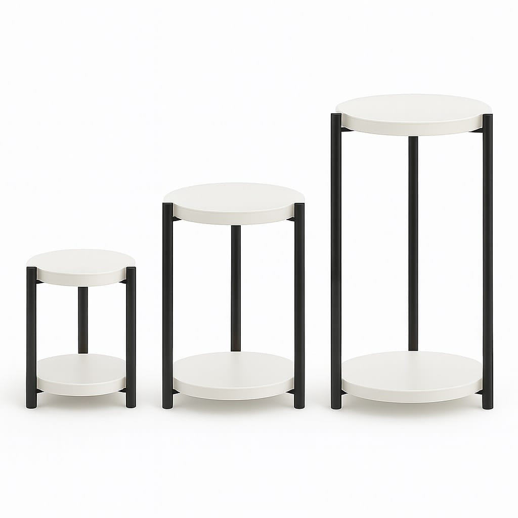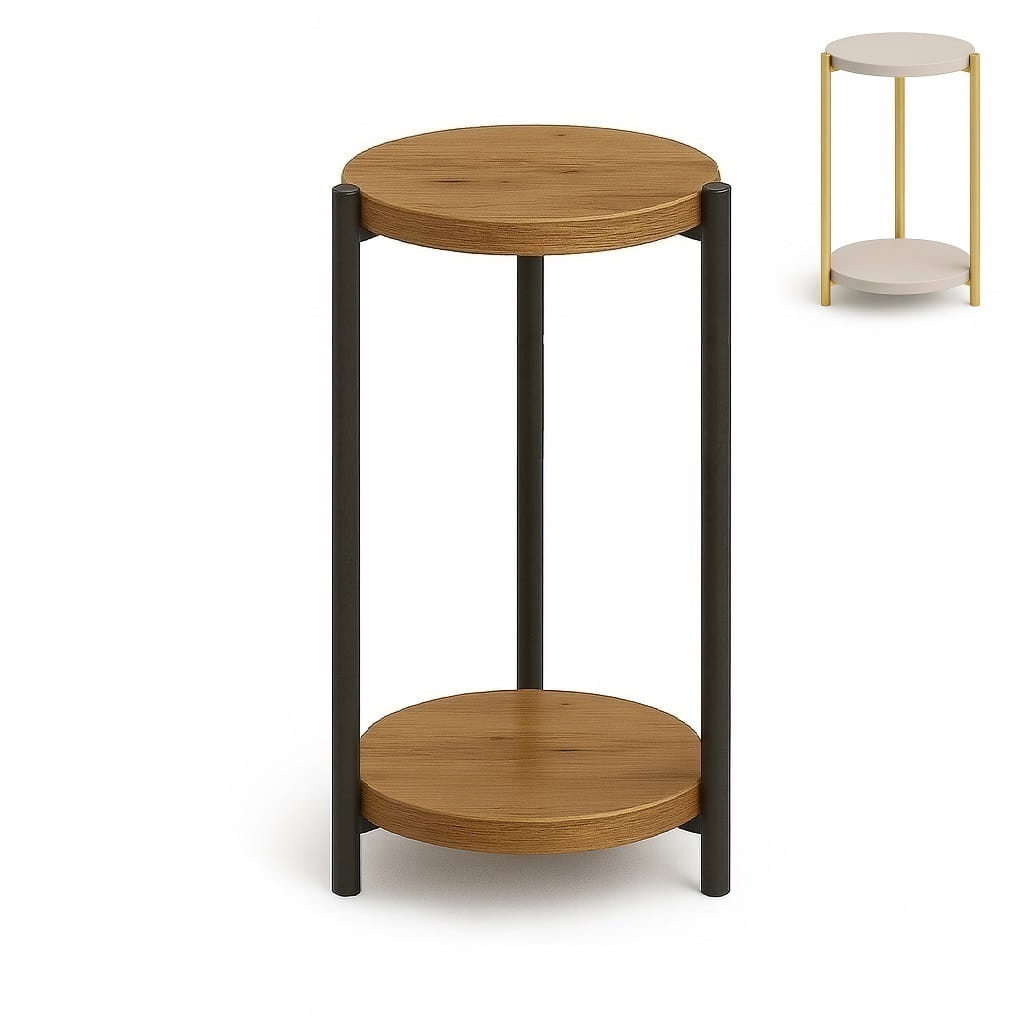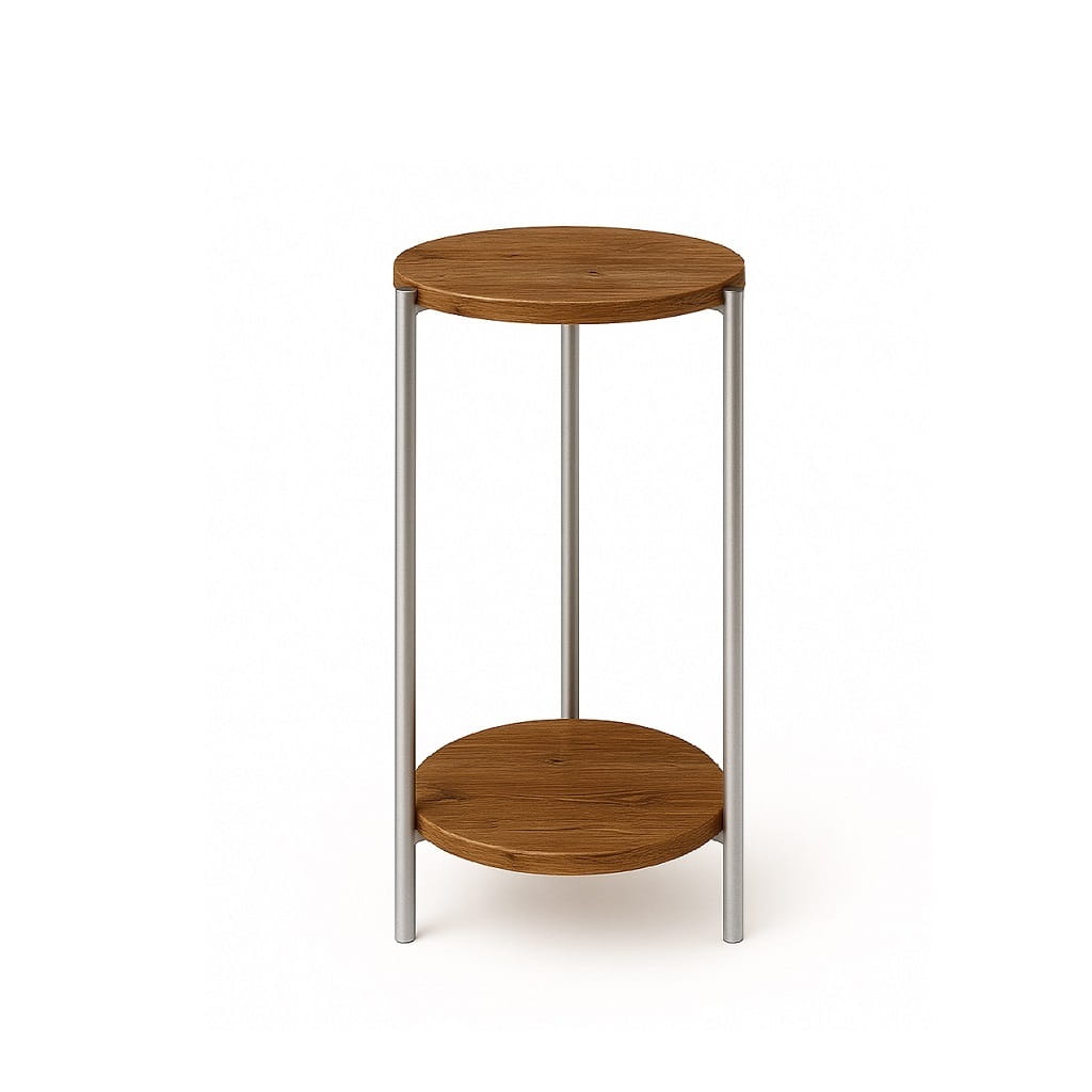 Połączenie okrągłego blatu i metalowych nóg tworzy spójną, nowoczesną bryłę, która doskonale wpisuje się w styl industrialny i minimalistyczny. Kwietnik może pełnić zarówno funkcję użytkową, jak i dekoracyjną.