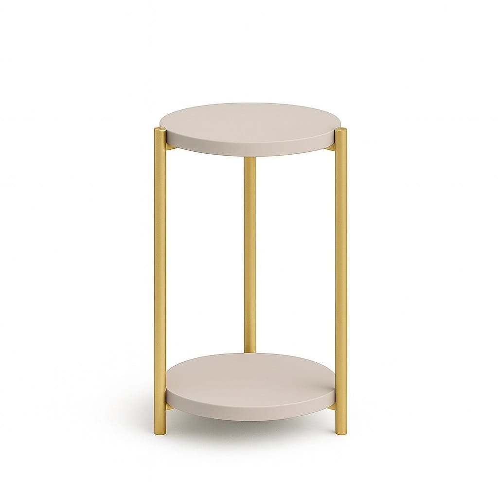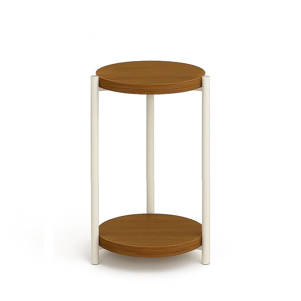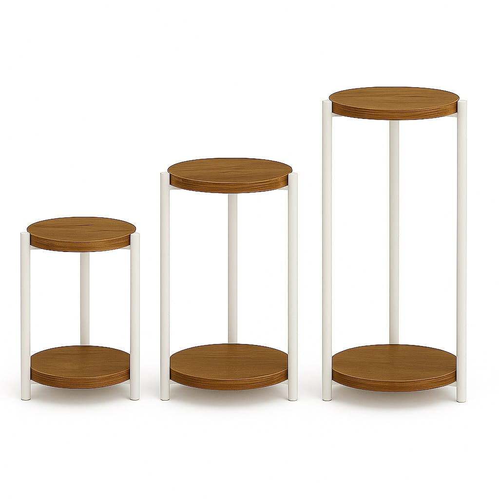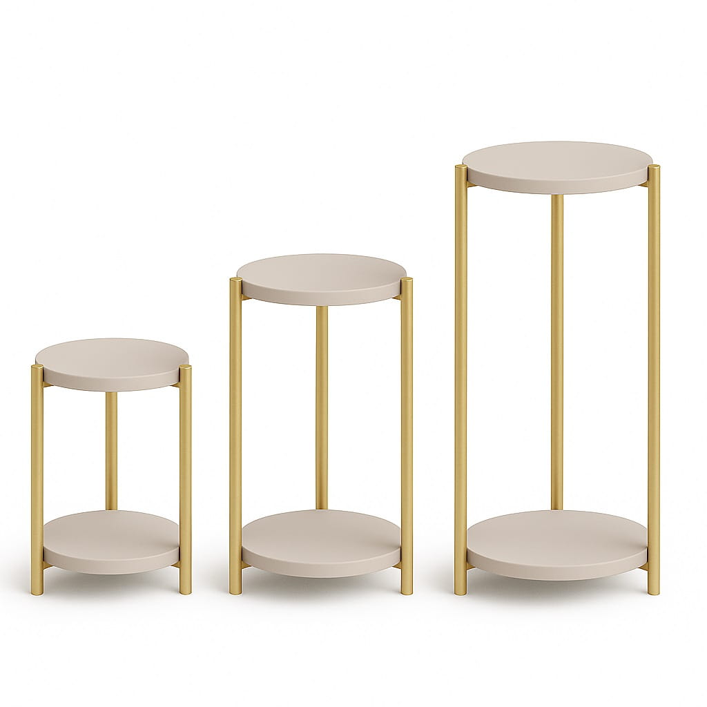 Połączenie okrągłego blatu i metalowych nóg tworzy spójną, nowoczesną bryłę, która doskonale wpisuje się w styl industrialny i minimalistyczny. Kwietnik może pełnić zarówno funkcję użytkową, jak i dekoracyjną.