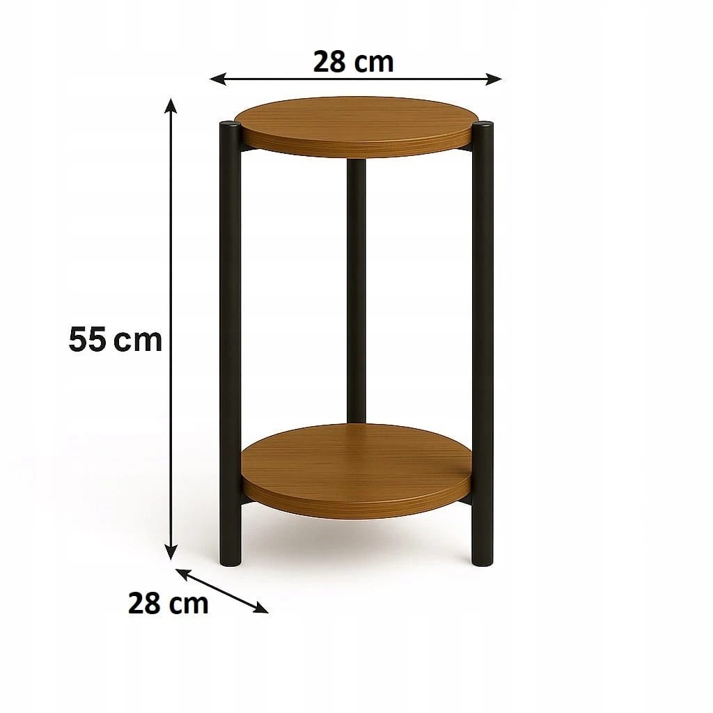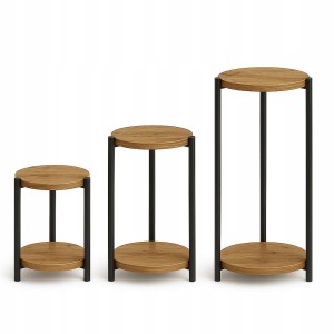 Zestaw trzech kwietników stojących w stylu LOFT INDUSTRIAL o średnicy blatów fi 28cm. Kwietniki dostępne w trzech wysokościach: 45cm/55cm/65cm. Wykonany z płyty laminowanej o grubości 18mm. Metalowe nogi malowana proszkowo zapewnia doskonałą stabilność kwietników.
