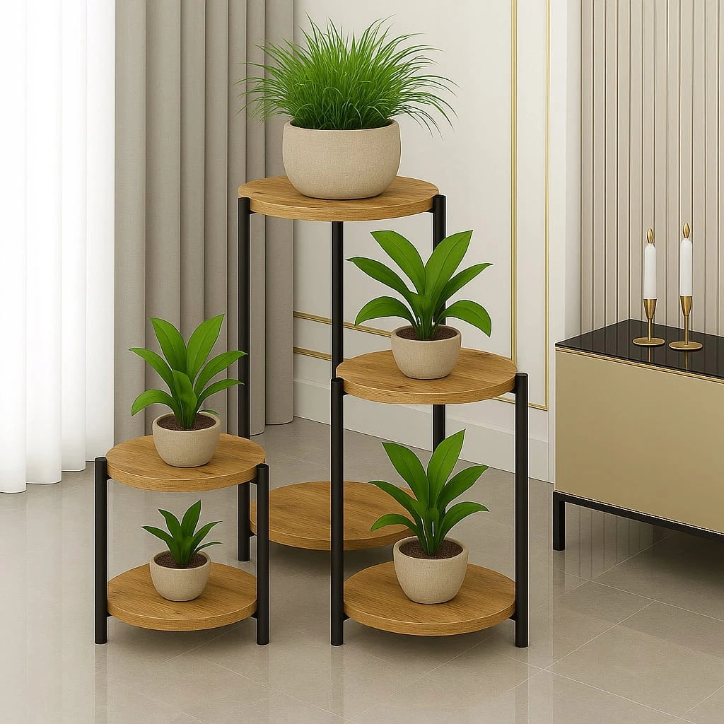 Kwietnik Stojący Stojak na Kwiaty Zestaw Dąb Craft Metal PROMOCJA I ArtDHome