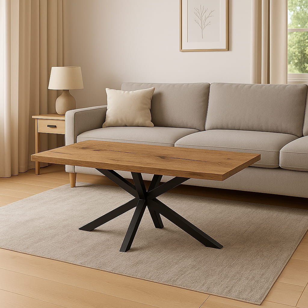 Charakterystyczne metalowe nogi w kształcie pająka nadają meblowi wyjątkowego charakteru i stabilności. Ława industrialna do salonu świetnie komponuje się z nowoczesnymi sofami, narożnikami oraz innymi meblami w stylu loft.