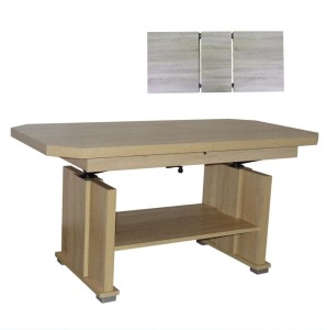 Mechanizm podnoszenia umożliwia zmianę wysokości blatu w zakresie od 60 do 75 cm, co pozwala dopasować mebel do aktualnych potrzeb – od niskiej ławy kawowej po klasyczny stół do spożywania posiłków. Dodatkowa wkładka o szerokości 40 cm zwiększa długość do 166 cm, tworząc ławostół z regulacją wysokości 60–75 cm, który sprawdzi się podczas rodzinnych obiadów i spotkań towarzyskich. To przemyślany ławostół do małego mieszkania, który eliminuje konieczność ustawiania dwóch oddzielnych mebli.