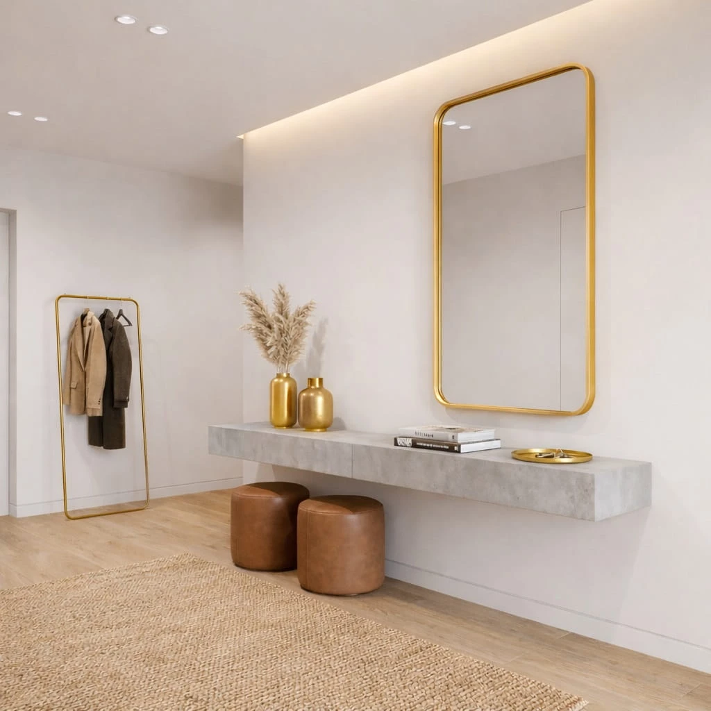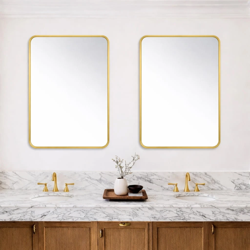 Lustro zaowalone 60x80 cm w złotej metalowej ramie to elegancki i funkcjonalny element wyposażenia wnętrza, który doskonale łączy estetykę z codziennym komfortem użytkowania. Zaowalony kształt wprowadza do przestrzeni lekkość i harmonię, a metalowe wykończenie nadaje całości wyjątkowego charakteru. To idealny wybór do łazienki, przedpokoju, sypialni lub stylowego salonu.