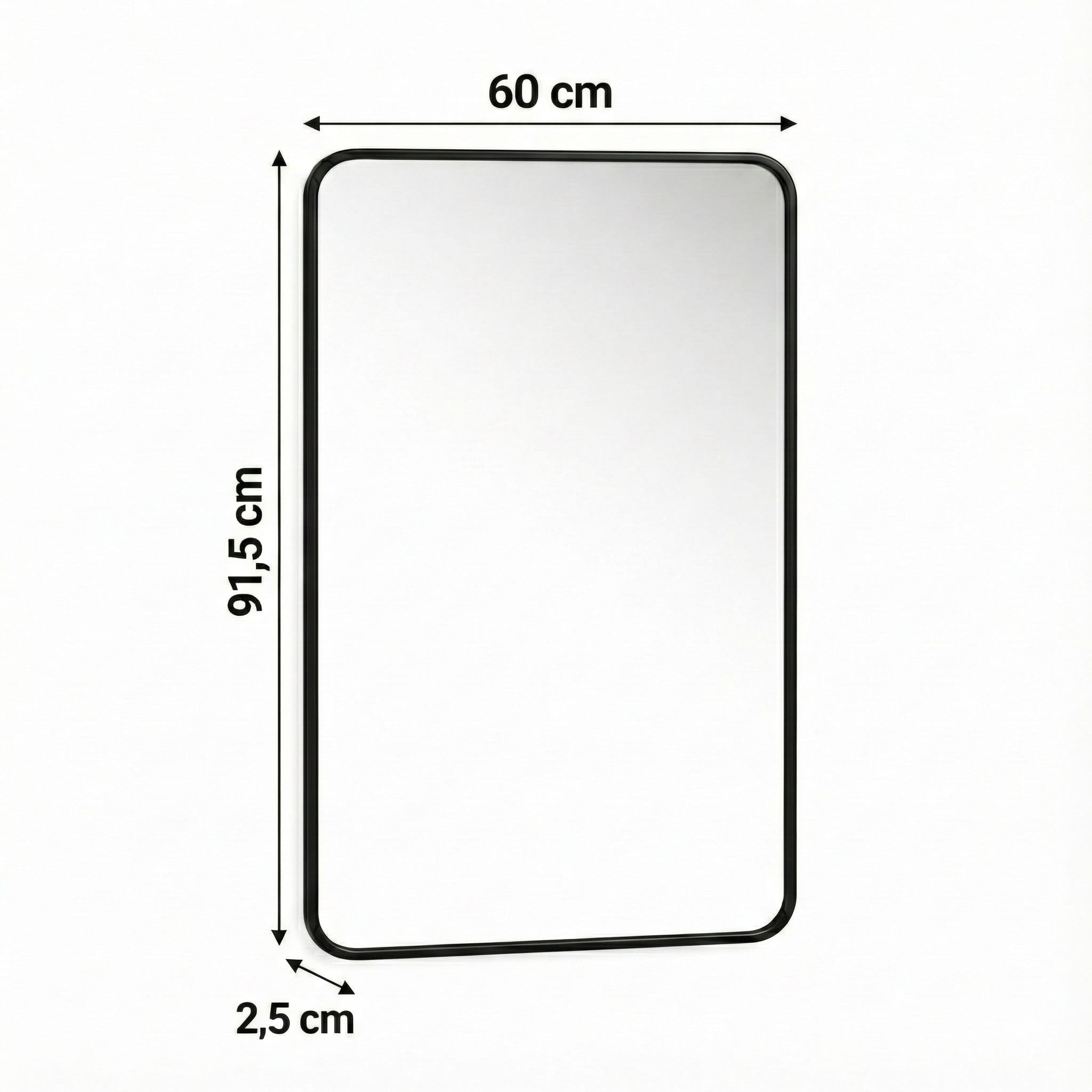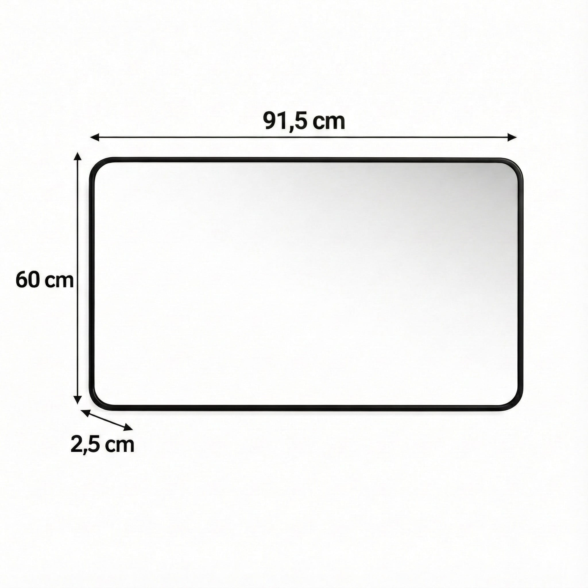 Lustro w metalowej ramie 60x91,5 cm zostało wykonane z wysokiej jakości materiałów, co zapewnia jego trwałość i odporność na codzienne użytkowanie. Rama o grubości 25 mm nadaje całości wyrazistości, podkreślając nowoczesny charakter produktu.