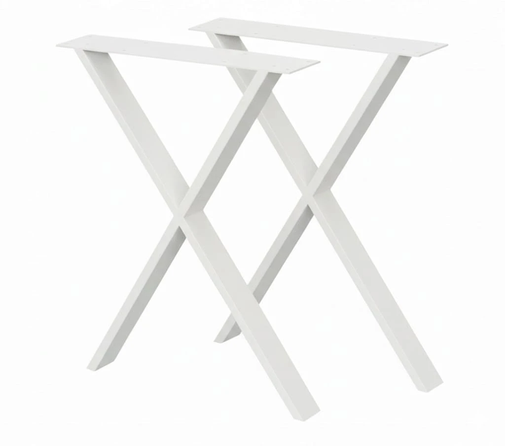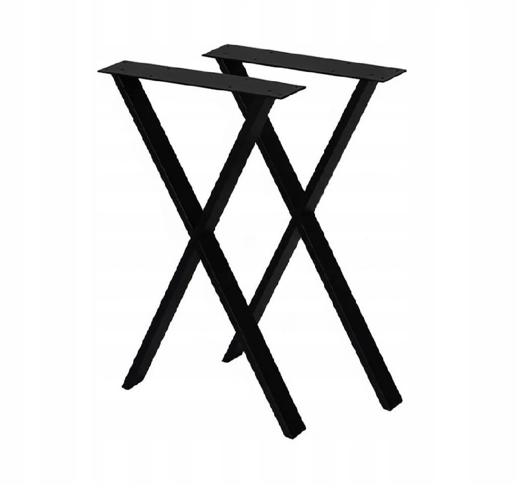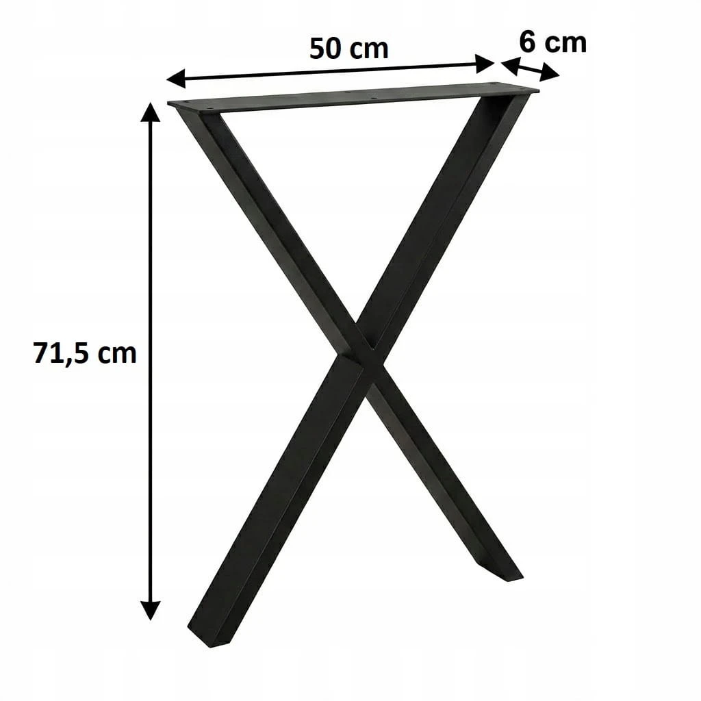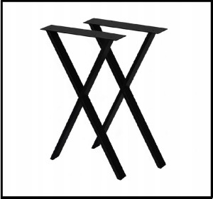 Nogi w stylu LOFT INDUSTRIAL idealnie nadają się do zastosowania w stołach, ławach oraz biurkach. Nogi do w kształcie litery X o wymiarach wys. 71,5cm oraz szer. 50cm to idealne rozwiązanie do każdego pomieszczenia. Wykonane są z profili metalowych w kolorze czarnym malowanym proszkowo o wymiarach 6cm x 2cm oraz górnego płaskownika o wymiarach 10cm x 0,4cm. Dzięki swej solidnej konstrukcji zapewniają doskonała stabilność, wytrzymałość na uszkodzenia oraz trwałość. Każda noga posiada filc zapobiegający rysowaniu się podłogi.
