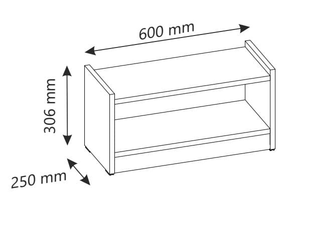 Praktyczny regał na buty o szerokości 60cm. Posiada dwie półki, które służą do przechowywania obuwia. Dzięki ergonomicznym wymiarom produktu łatwo urządzisz swoje pomieszczenie.
