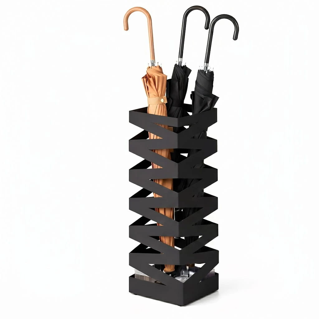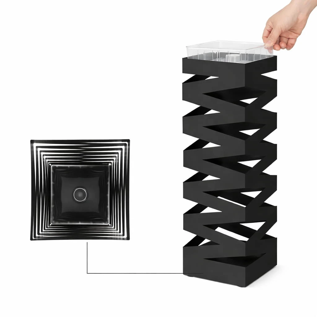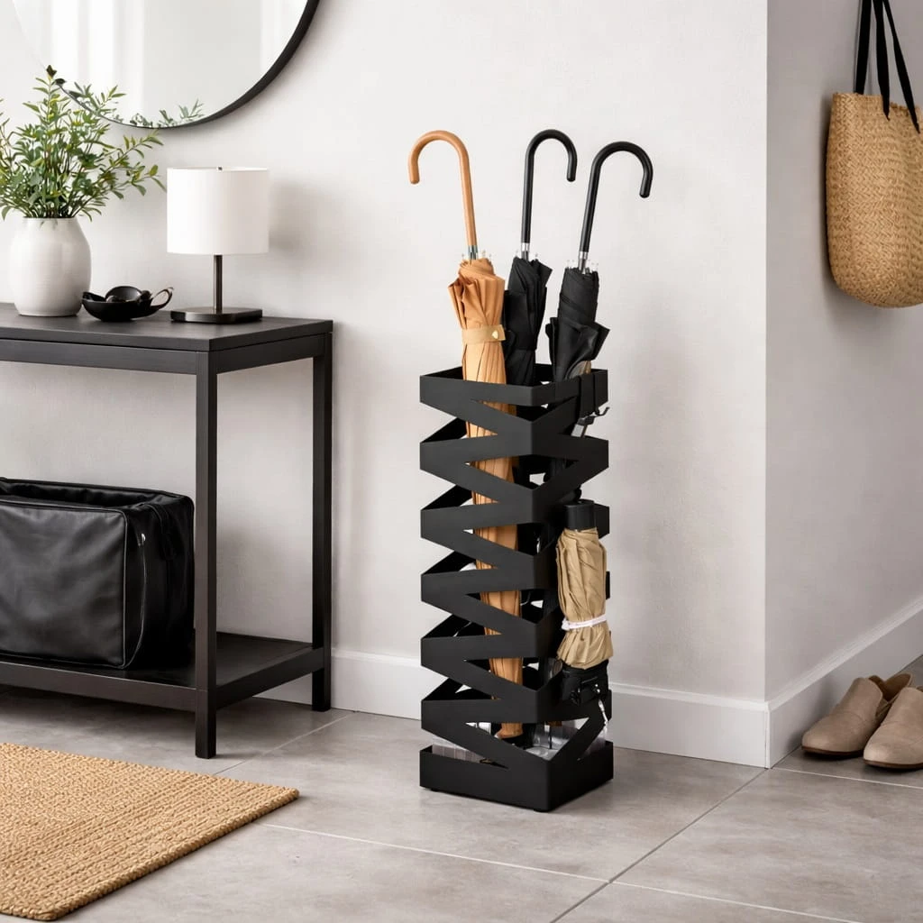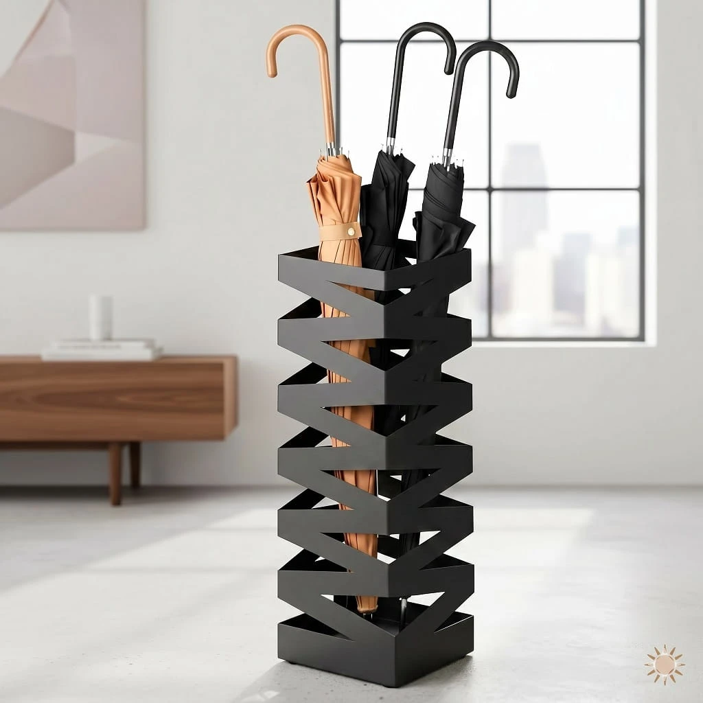 Stojak na parasole to funkcjonalne i stylowe rozwiązanie, które chroni podłogę przed wodą i zabrudzeniami. Stojak wykonany został z trwałej stali nierdzewnej co gwarantuje wysoką odporność na codzienne użytkowanie. Nowoczesny wygląd sprawia, że pasuje zarówno do wnętrz klasycznych, jak i nowoczesnych. Posiada wyjmowaną tackę na wodę, która skutecznie chroni podłogę przed wilgocią. Antypoślizgowe podkładki zabezpieczają przed uszkodzeniem podłoża.
