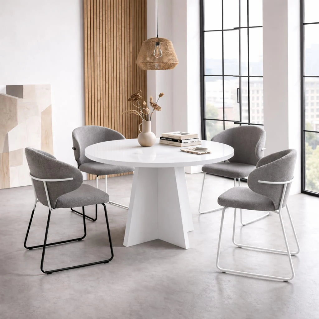 Dzięki możliwości wyboru koloru blatu oraz podstawy model można dopasować do różnych aranżacji wnętrz. Stół okrągły do jadalni 100 cm świetnie odnajduje się w nowoczesnych mieszkaniach, przestrzeniach loftowych, a także w aranżacjach inspirowanych stylem skandynawskim czy minimalistycznym.