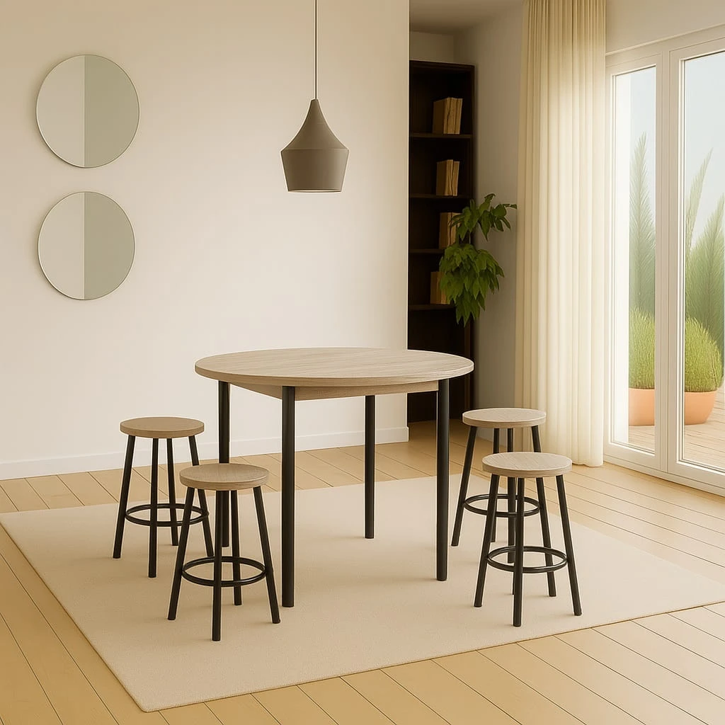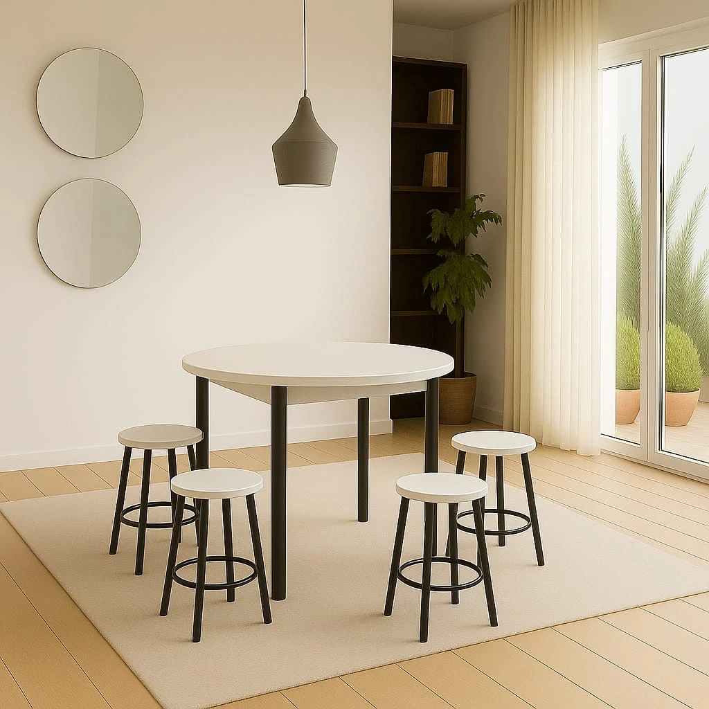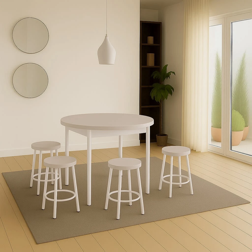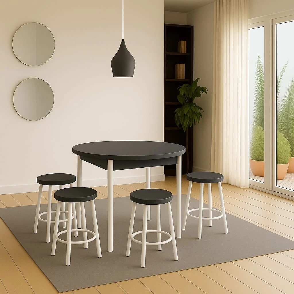 Istnieje możliwość dokupienia taboretów do kompletu, co pozwala stworzyć funkcjonalny zestaw mebli do kuchni lub jadalni.