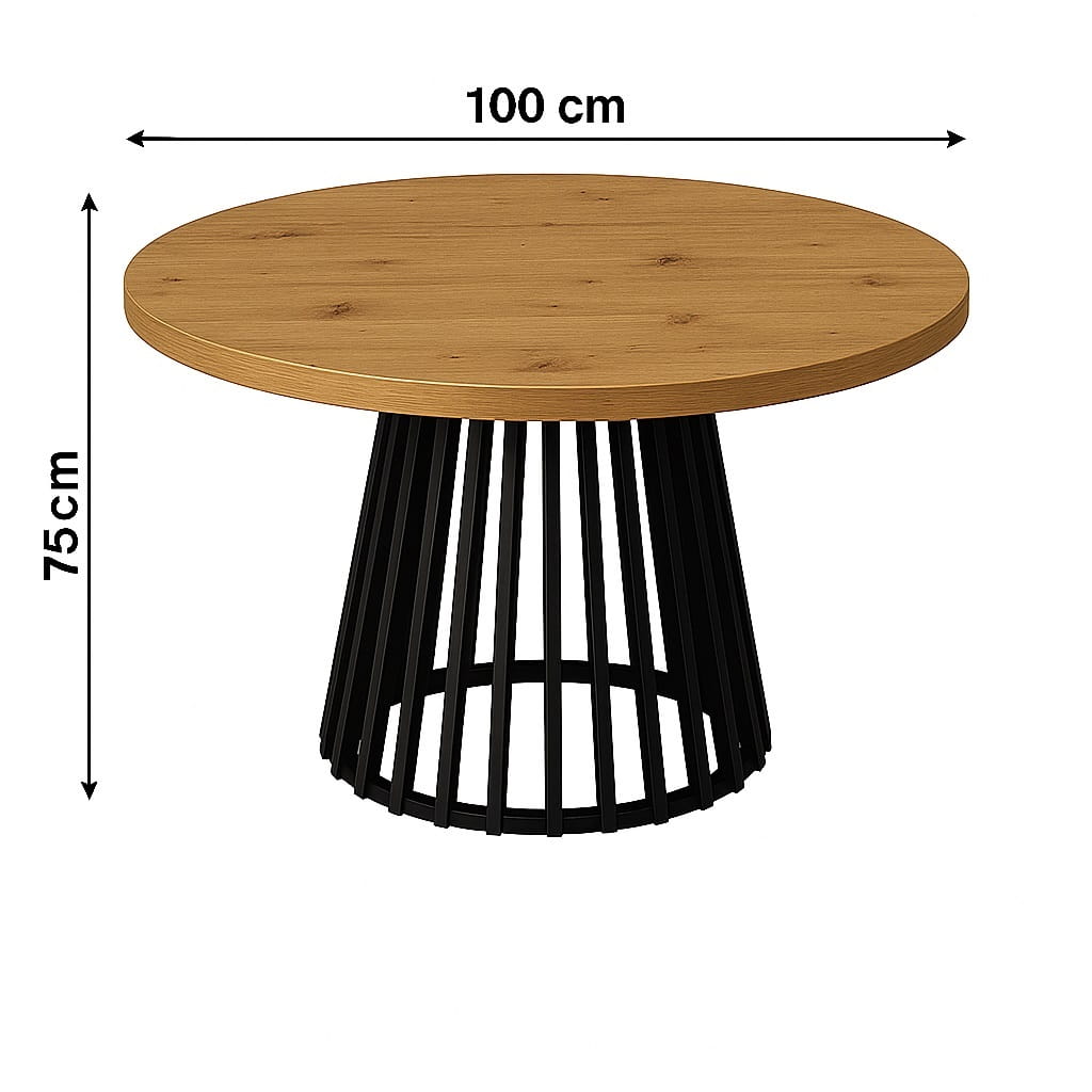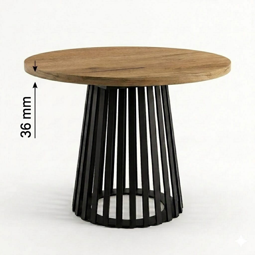 Stół 100 cm okrągły nierozkładany, blat 3,6 cm, podstawa Metalowa „ Lamele ” I ArtDHome