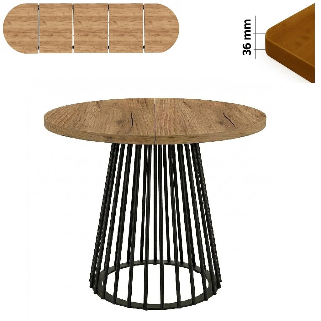 Stół 100/250 cm okrągły rozkładany, blat 3,6 cm, "Ażurowa" metalowa podstawa | ArtDHome