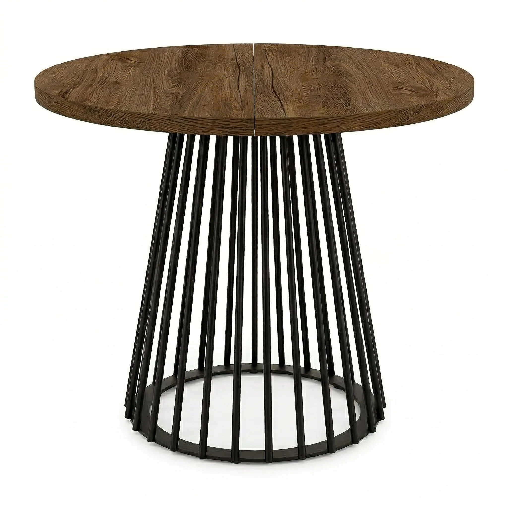 Stół industrialny okrągły rozkładany dzięki swojej formie i solidnej konstrukcji świetnie pasuje do wnętrz w stylu loftowym, nowoczesnym oraz industrialnym, stanowiąc praktyczny i elegancki element wyposażenia.