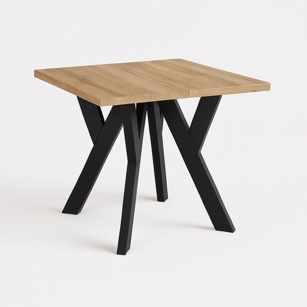 Stół 100x100/150 cm rozkładany to nowoczesna interpretacja klasycznego stołu kwadratowego. Masywny blat 3,6 cm oraz wyraziste metalowe nogi typu „Y” tworzą stabilną, designerską konstrukcję, która doskonale odnajdzie się w przestronnej jadalni, salonie czy nowoczesnym apartamencie.