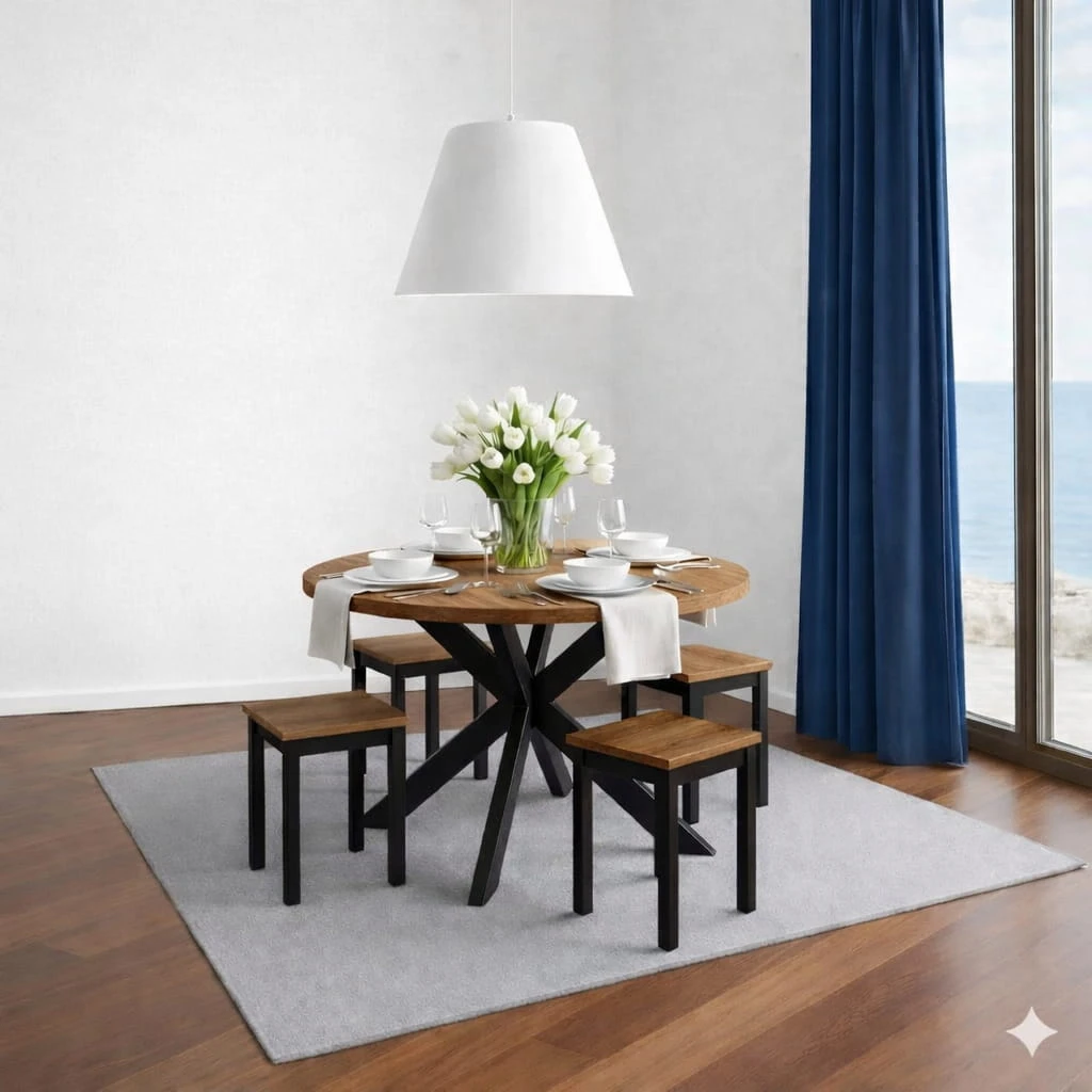 Dzięki kompaktowym wymiarom stół loft okrągły 120 cm doskonale sprawdzi się w kuchni, jadalni lub salonie. Minimalistyczna forma oraz solidna konstrukcja sprawiają, że stół łączy funkcjonalność z nowoczesną estetyką.