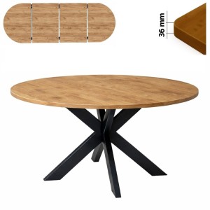 Stół 120/190 cm okrągły rozkładany, blat 3,6 cm, nogi metalowe czarne „Pająk” I ArtDHome