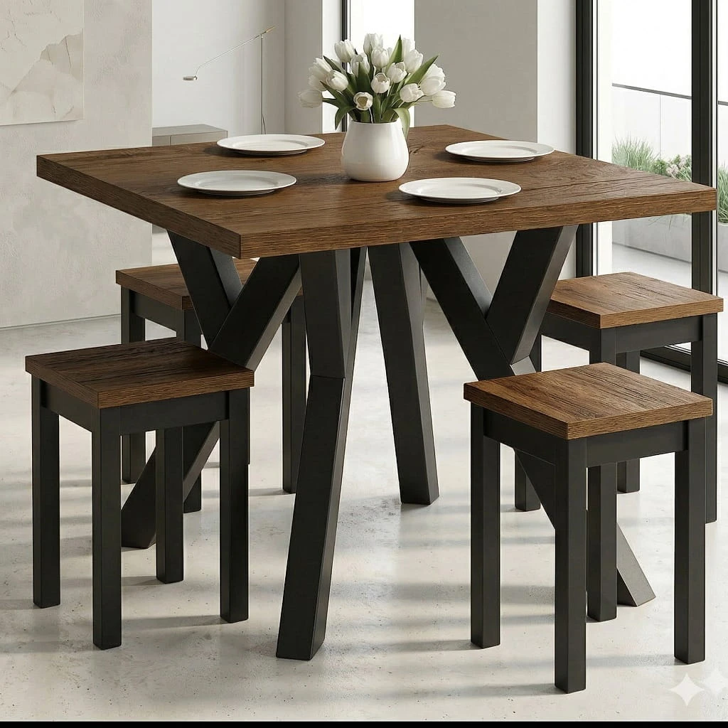 Metalowe nogi w układzie Y wykonane z masywnego profilu 40 x 60 mm nadają stołowi dynamiczny, industrialny wygląd i gwarantują wysoką stabilność. Stół 120x120 loft z nogami Y stanowi mocny element aranżacyjny i doskonale odnajduje się w przestronnych jadalniach, salonach typu open space oraz nowoczesnych wnętrzach. To solidny stół z metalowymi nogami Y, który łączy estetykę z funkcjonalnością.