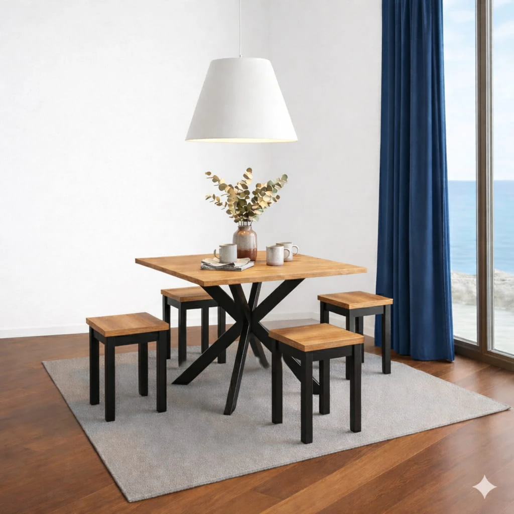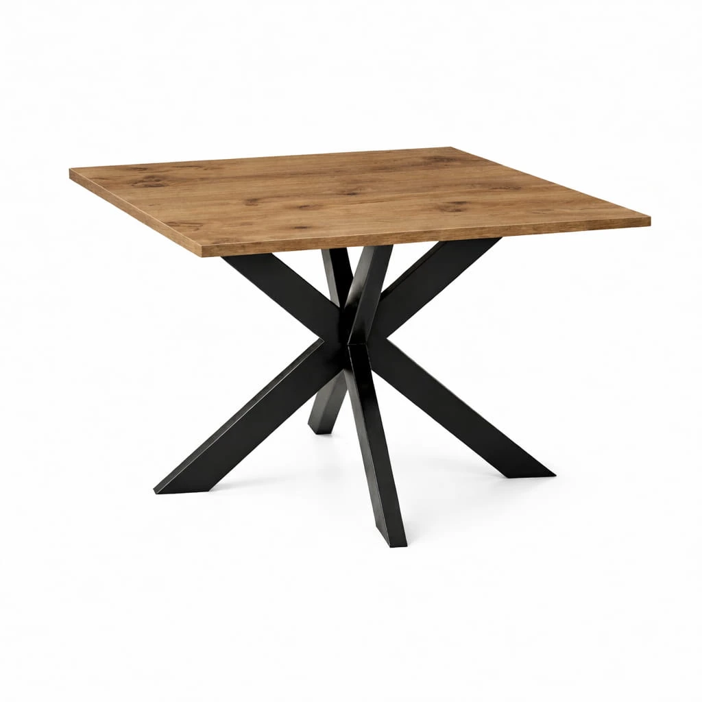 Stół 120x120/170 cm rozkładany to solidny i nowoczesny mebel zaprojektowany z myślą o wnętrzach w stylu industrialnym oraz loftowym. Kwadratowy blat zapewnia wygodną przestrzeń do codziennych posiłków, pracy lub spotkań przy stole, a charakterystyczna metalowa podstawa nadaje konstrukcji wyrazisty charakter. Dzięki możliwości rozłożenia blatu łatwo dopasujesz jego wielkość do liczby domowników lub gości.