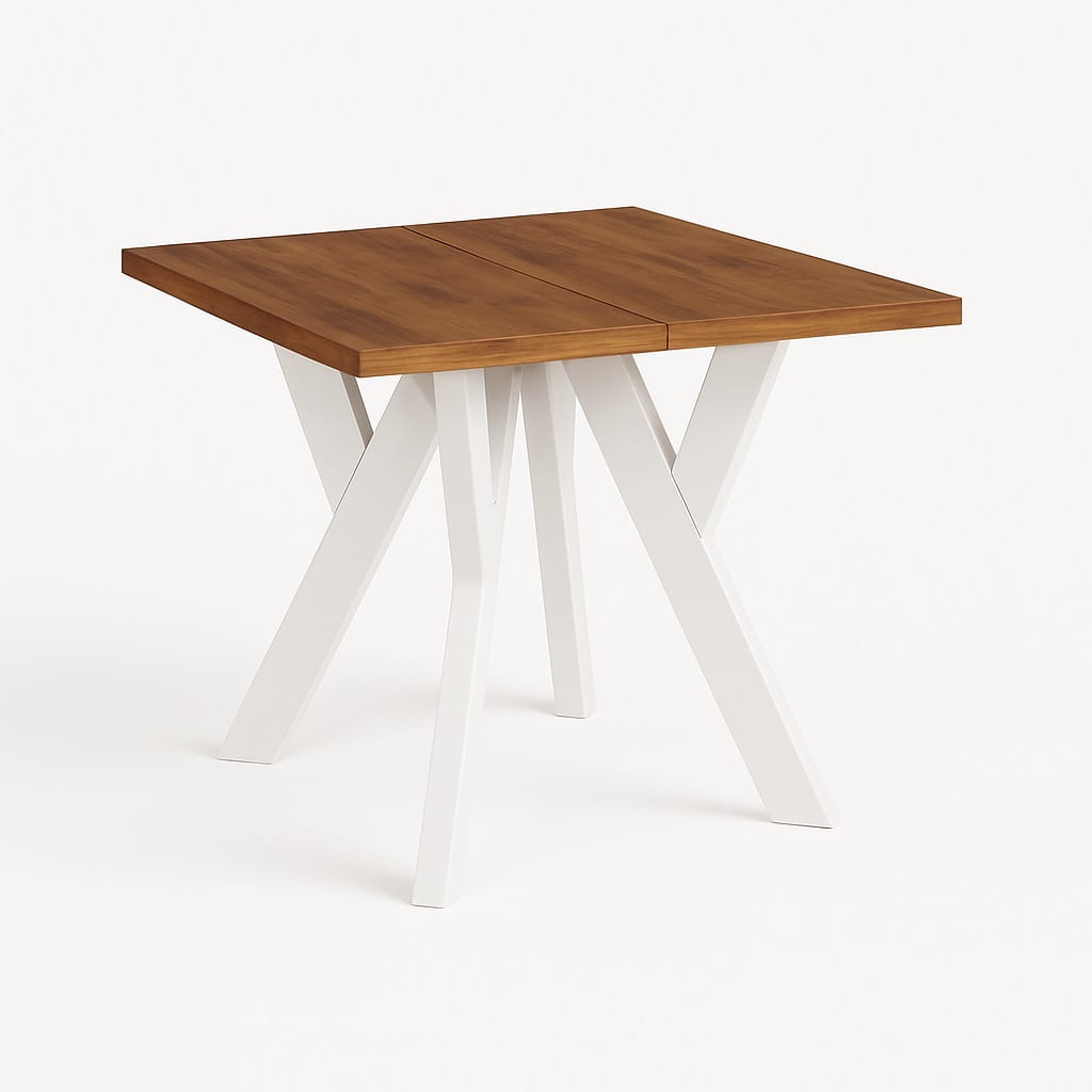 Stół 120x120/220 cm rozkładany to przestronny, nowoczesny mebel zaprojektowany z myślą o dużych jadalniach i otwartych strefach dziennych. Geometryczna forma kwadratu, pogrubiony blat 3,6 cm oraz charakterystyczne metalowe nogi typu „Y” tworzą wyrazistą i stabilną konstrukcję.