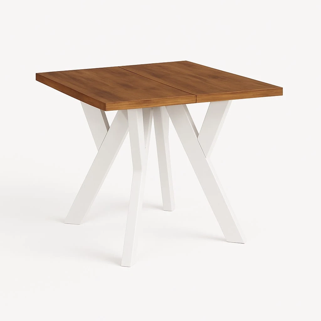 W wersji podstawowej stół kwadratowy 120x120 rozkładany komfortowo pomieści 6–8 osób. Dzięki trzem wkładkom po 50 cm długość blatu można zwiększyć do 270 cm, uzyskując pełnowymiarowy stół bankietowy.