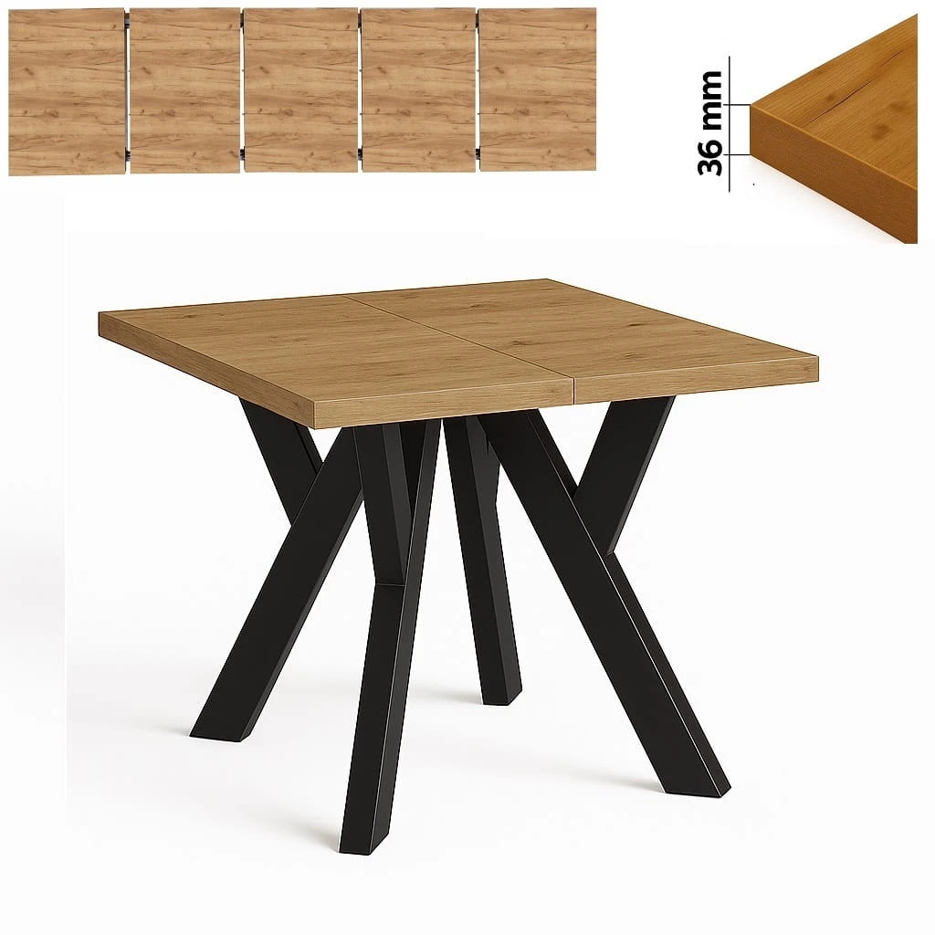 Stół 120x120/270 cm kwadratowy rozkładany, blat 3,6 cm, nogi Metalowe „ Y ” I ArtDHome