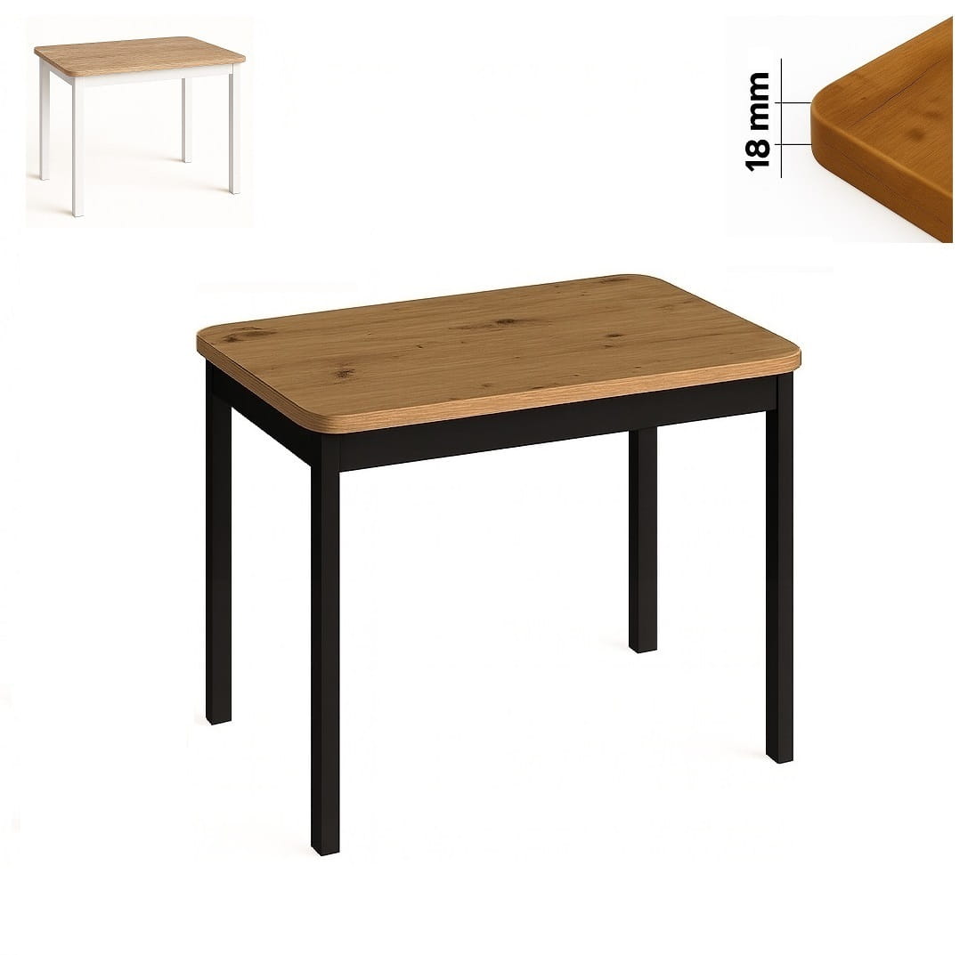Stół 50x60 z blatem 18 mm wykonany jest z laminowanej płyty o podwyższonej odporności na zarysowania. Smukła konstrukcja blatu nadaje meblowi wizualnej lekkości, co jest szczególnie ważne w małych pomieszczeniach.