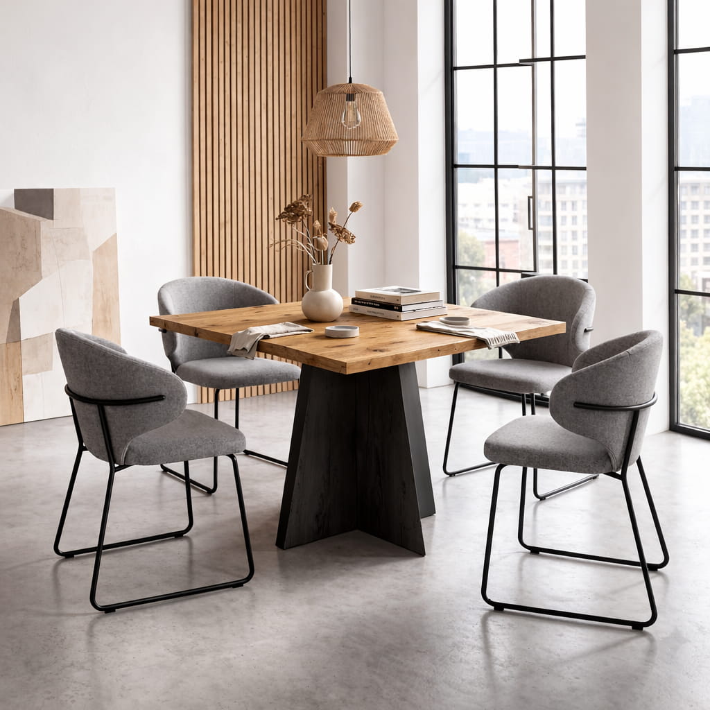 Dzięki możliwości wyboru koloru blatu oraz podstawy model można dopasować do różnych stylów aranżacyjnych. stół kwadratowy do kuchni lub salonu 60x60 sprawdzi się zarówno w niewielkich mieszkaniach, jak i w przestrzeniach loftowych, nowoczesnych czy skandynawskich.