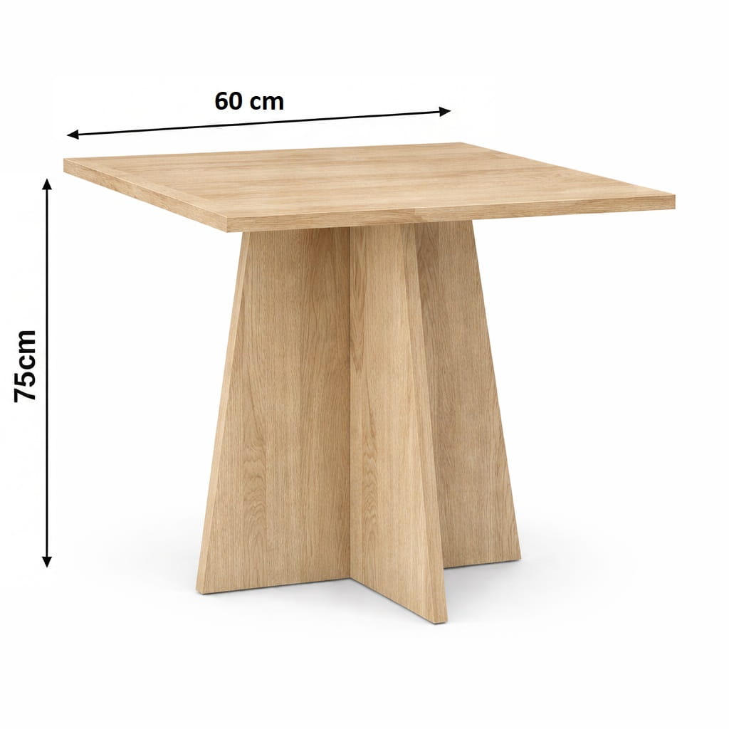 Wymiar 60 × 60 cm zapewnia wygodną powierzchnię użytkową, która pozwala korzystać ze stołu podczas codziennych posiłków, pracy przy laptopie czy spotkań przy kawie. Dzięki proporcjom mały stół kwadratowy 60x60 doskonale sprawdza się w mieszkaniach w bloku, kawalerkach lub w niewielkiej strefie jadalnianej.