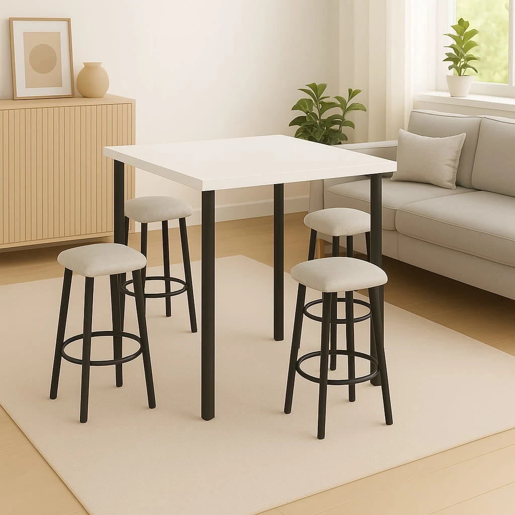 Model doskonale sprawdzi się jako stół 60x100 do małej kuchni lub mieszkania w bloku, gdzie liczy się każdy centymetr przestrzeni. Prostokątny kształt umożliwia ustawienie przy ścianie lub w centralnej części pomieszczenia, w zależności od aranżacji. Odległość między nogami wynosi około 450 mm (szerokość) i 850 mm (długość), co pozwala komfortowo ustawić 2–4 krzesła i zachować swobodę ruchu przy stole.