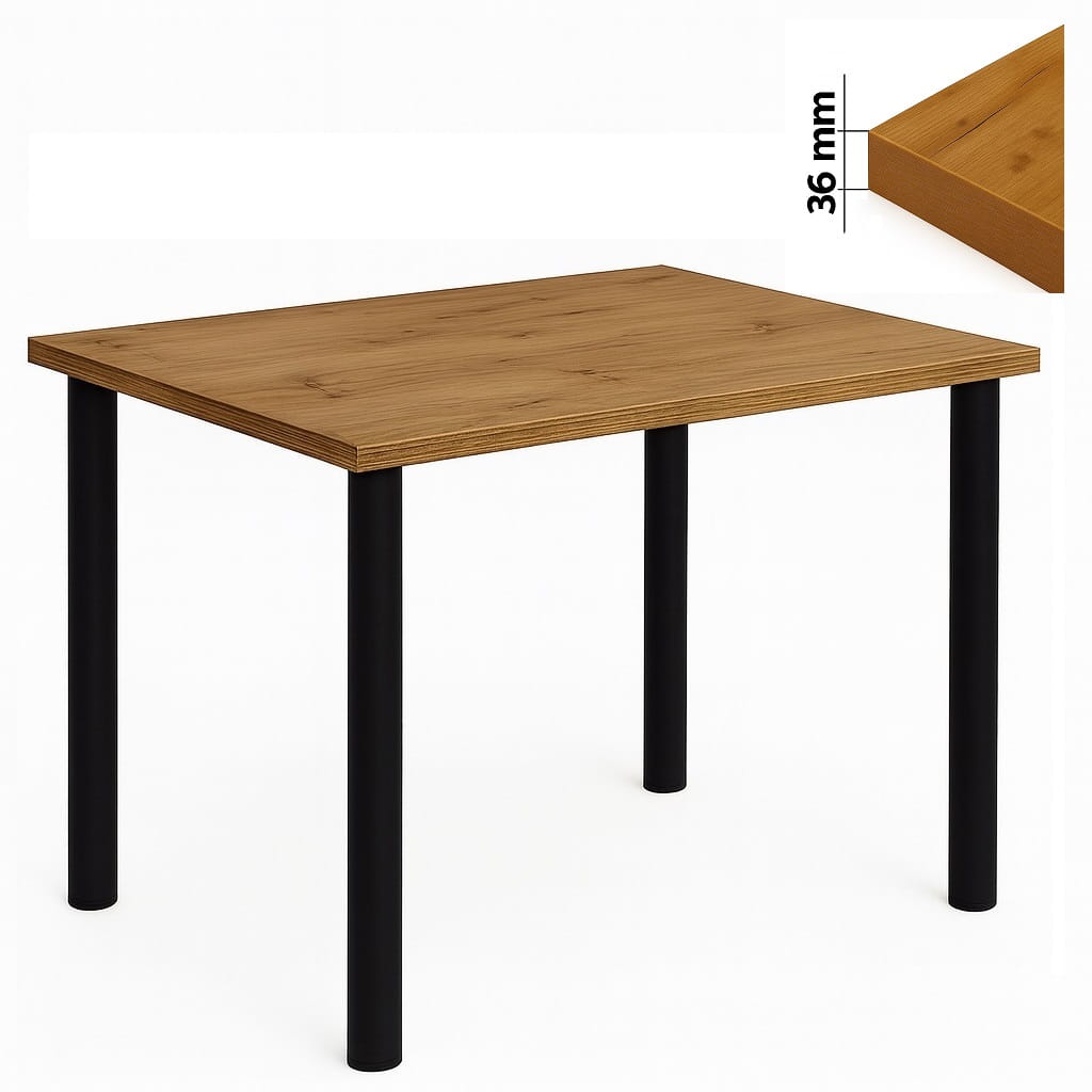 Stół 60x100 cm prostokątny nierozkładany, blat do kantu 3,6 cm, nogi Metalowe „Okrągłe” I ArtDHome