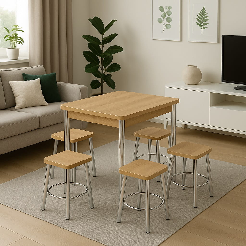 Kupując bezpośrednio od producenta, otrzymujesz gwarancję najniższej ceny oraz produkt bez pośredników. Istnieje również możliwość dokupienia taboretów do kompletu, co pozwala stworzyć spójną przestrzeń jadalnianą.