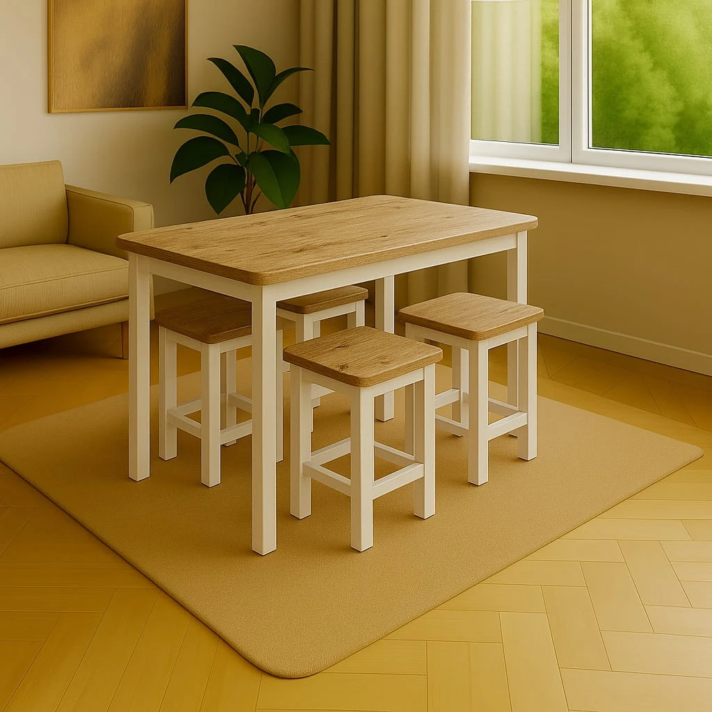 Stół do kuchni 60x100 z grubym blatem 36 mm wyróżnia się solidną konstrukcją i estetycznym wykończeniem. Grubość 3,6 cm nadaje meblowi masywny, stabilny wygląd oraz zwiększa jego odporność na codzienne użytkowanie.