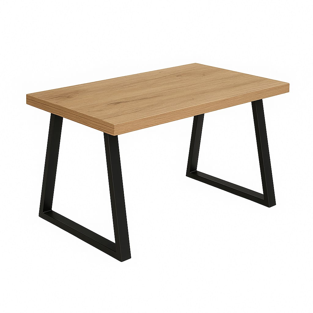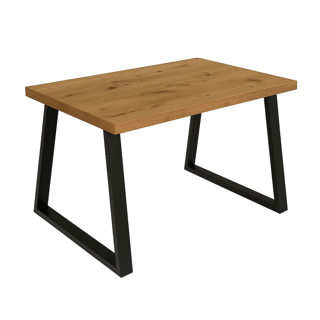 Stół loft 60x120 cm to nowoczesna propozycja do kuchni i jadalni, w której liczy się zarówno funkcjonalność, jak i wyrazisty design. Prostokątny blat o długości 120 cm zapewnia wygodną przestrzeń dla 4 osób, a charakterystyczne metalowe nogi typu trapez podkreślają industrialny styl mebla.