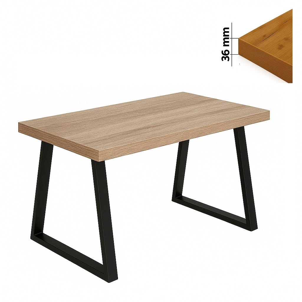 Stół 60x120 z blatem 36 mm wyróżnia się pogrubioną konstrukcją, która nadaje meblowi masywny, loftowy charakter. Blat wykonany z płyty laminowanej o podwyższonej odporności na zarysowania gwarantuje trwałość oraz estetyczny wygląd przez lata.