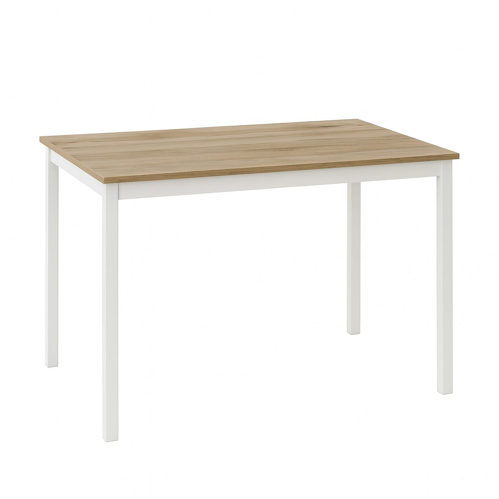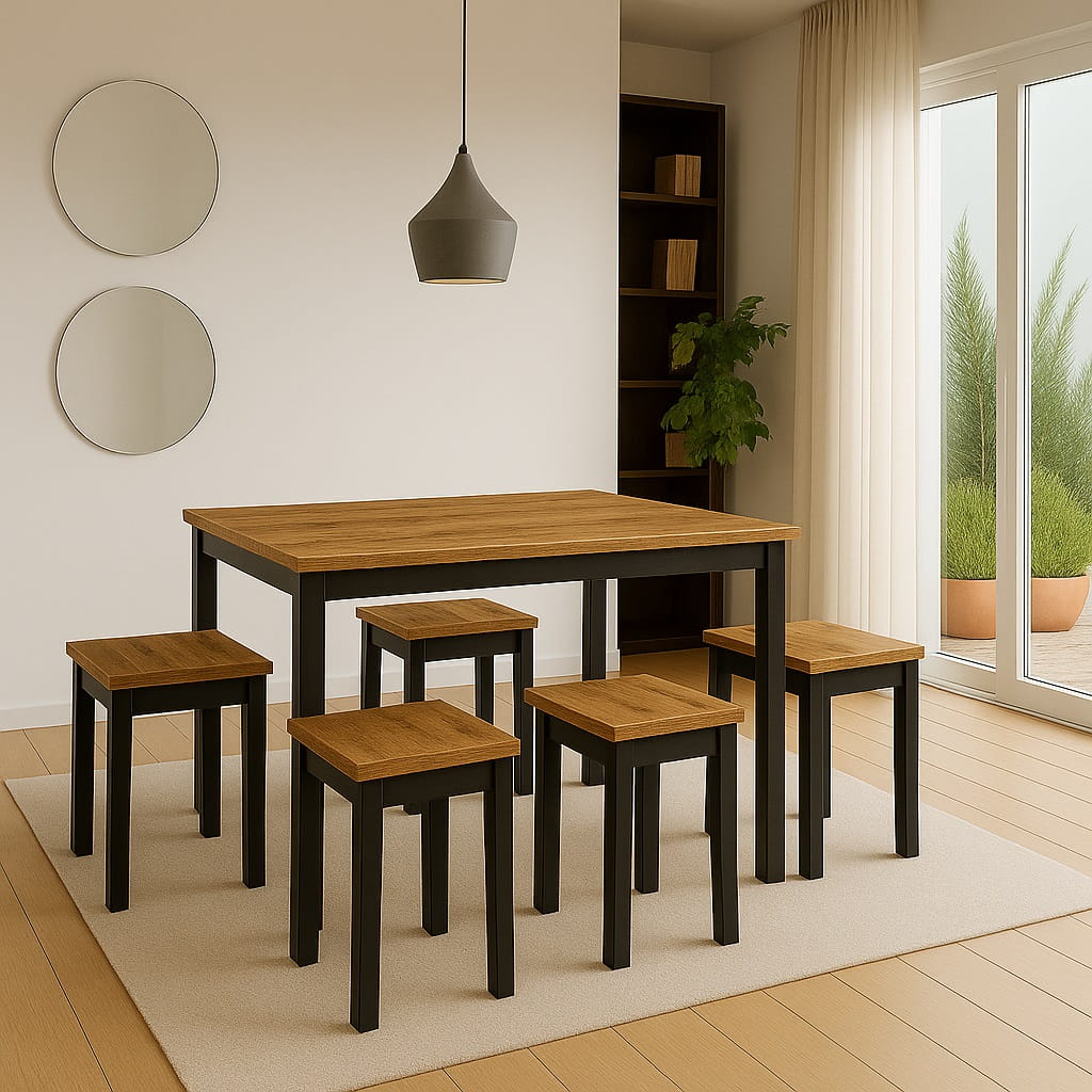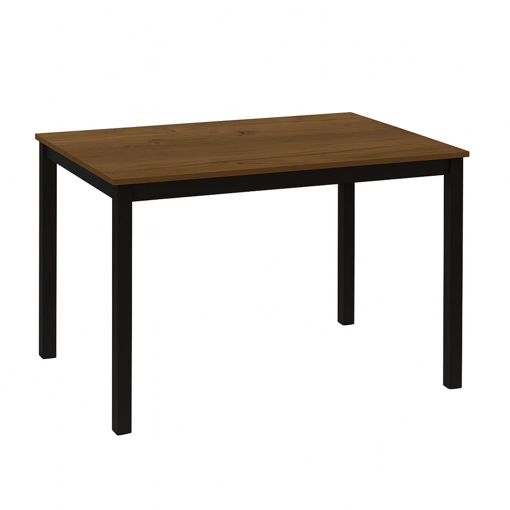 Wąska głębokość 60 cm sprawia, że model doskonale odnajduje się nawet w mniejszych pomieszczeniach. Jednocześnie długość 120 cm pozwala komfortowo ustawić cztery krzesła bez ograniczania przestrzeni użytkowej. Stół prostokątny 60x120 z metalowymi nogami łączy ergonomię z estetyką – może stać przy ścianie, w aneksie kuchennym lub centralnie w jadalni. To funkcjonalny wąski stół industrialny, który nie przytłacza wnętrza, a jednocześnie nadaje mu wyrazistego charakteru.