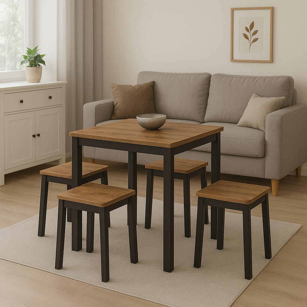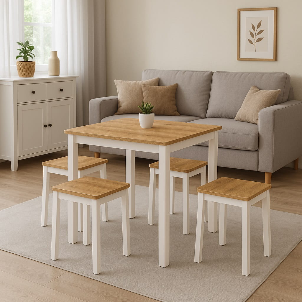 Stół kwadratowy 60x60 został zaprojektowany z myślą o maksymalnym wykorzystaniu ograniczonej przestrzeni. Jego proporcje pozwalają ustawić go nawet w niewielkim aneksie kuchennym czy w mieszkaniu typu studio. Jednocześnie pogrubiony blat tworzy solidną, estetyczną bryłę, dzięki czemu model nie wygląda lekko ani „tymczasowo”. To funkcjonalny kompaktowy stół do kawalerki, który mimo niewielkich wymiarów oferuje wygodę codziennego użytkowania. Sprawdzi się jako stół do małej kuchni 60 cm lub miejsce do pracy i nauki.