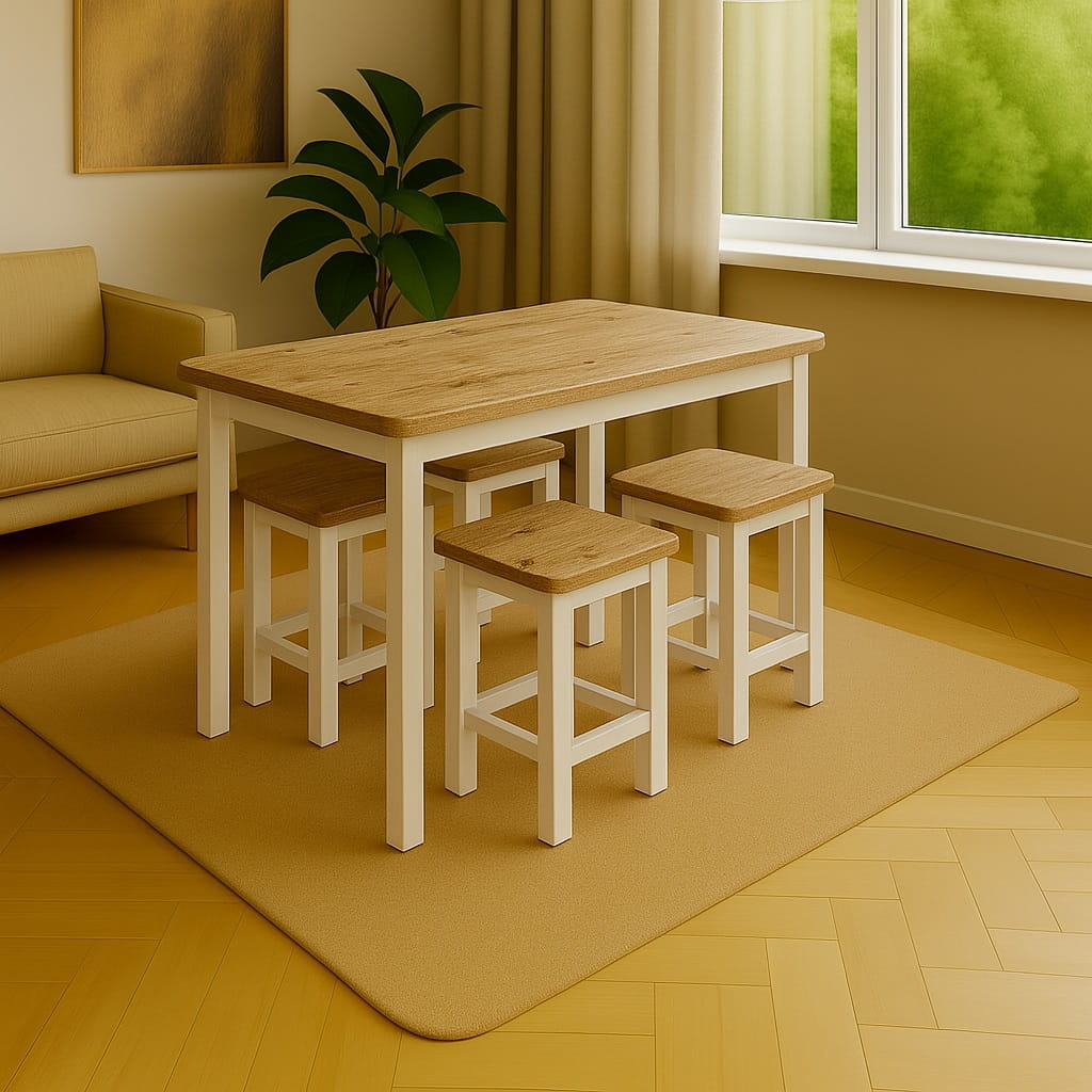 Stół 60x80 nogi drewniane kwadratowe oparty jest na lakierowanych nogach drewnianych o prostym, geometrycznym przekroju. Konstrukcja zapewnia stabilność oraz harmonijną, spójną linię mebla.