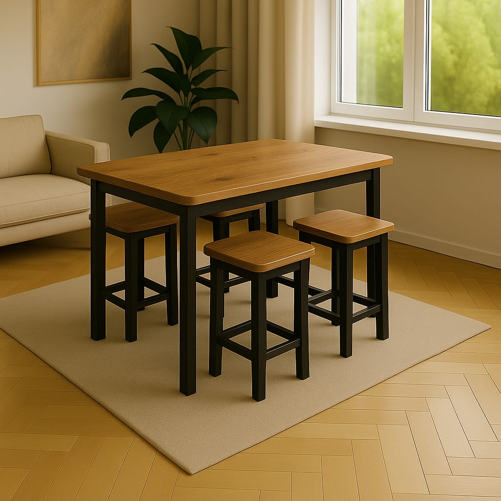 Stół 60x80 drewniane nogi to kompaktowy i funkcjonalny model zaprojektowany z myślą o mniejszych kuchniach, aneksach jadalnianych oraz niewielkich salonach. Prostokątny blat o wymiarach 60x80 cm zapewnia wygodną przestrzeń dla 2–3 osób, zachowując przy tym proporcje idealne do ograniczonej powierzchni.