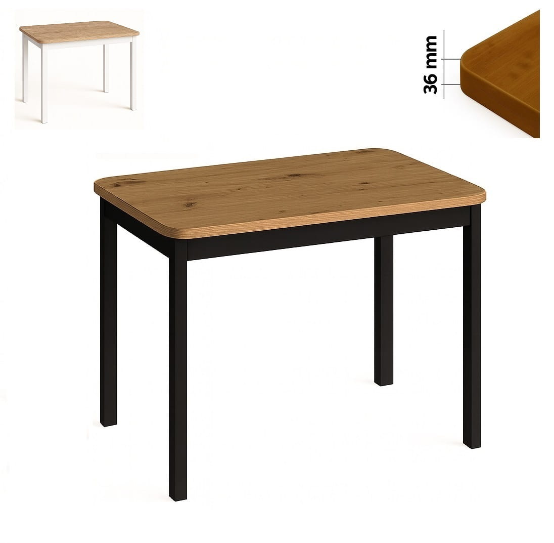 Stół 60x80 z grubym blatem 36 mm wykonany jest z laminowanej płyty o podwyższonej odporności na zarysowania. Grubość 3,6 cm nadaje meblowi stabilność i wyrazisty charakter, jednocześnie podkreślając jego solidność.