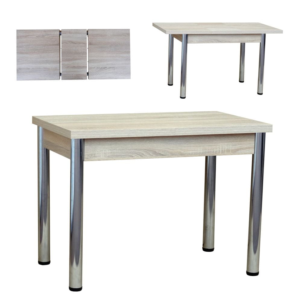 Stół rozkładany z metalowymi nogami okrągłymi dostępny jest w pięciu wariantach kolorystycznych nóg: satyna, chrom, biały zimny, czarny oraz inox (stal szczotkowana). To idealne rozwiązanie dla osób ceniących minimalistyczny design i elegancję.