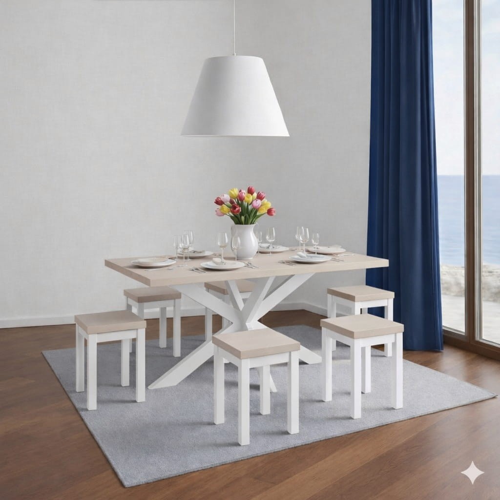 W podstawowej konfiguracji stół prostokątny rozkładany 70x120 oferuje komfortową przestrzeń do codziennych posiłków. Dzięki dodatkowej wkładce o długości 50 cm można szybko powiększyć jego długość do 170 cm, co pozwala wygodnie ugościć większą liczbę osób podczas rodzinnych spotkań lub wizyty gości.