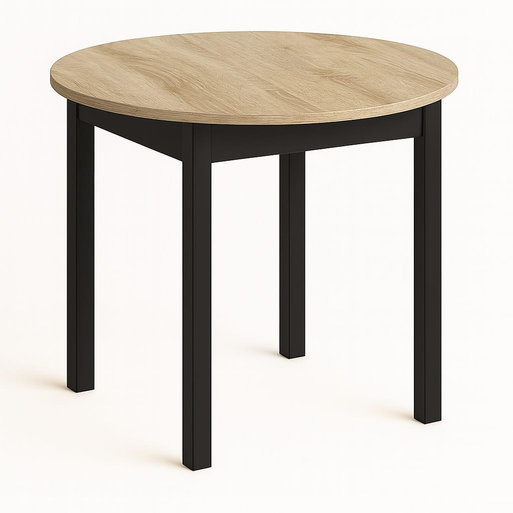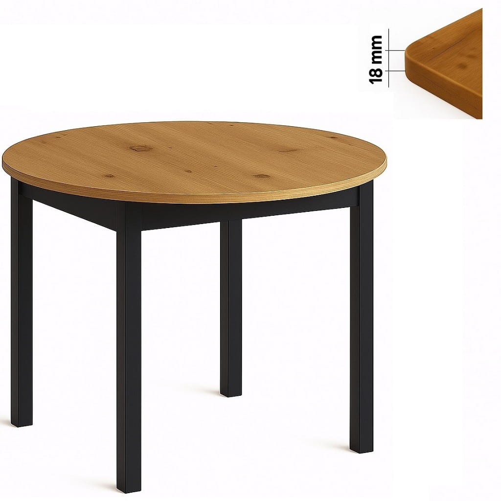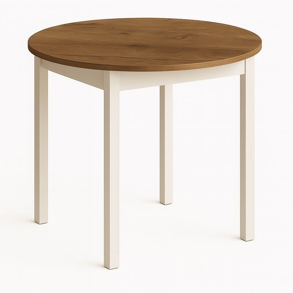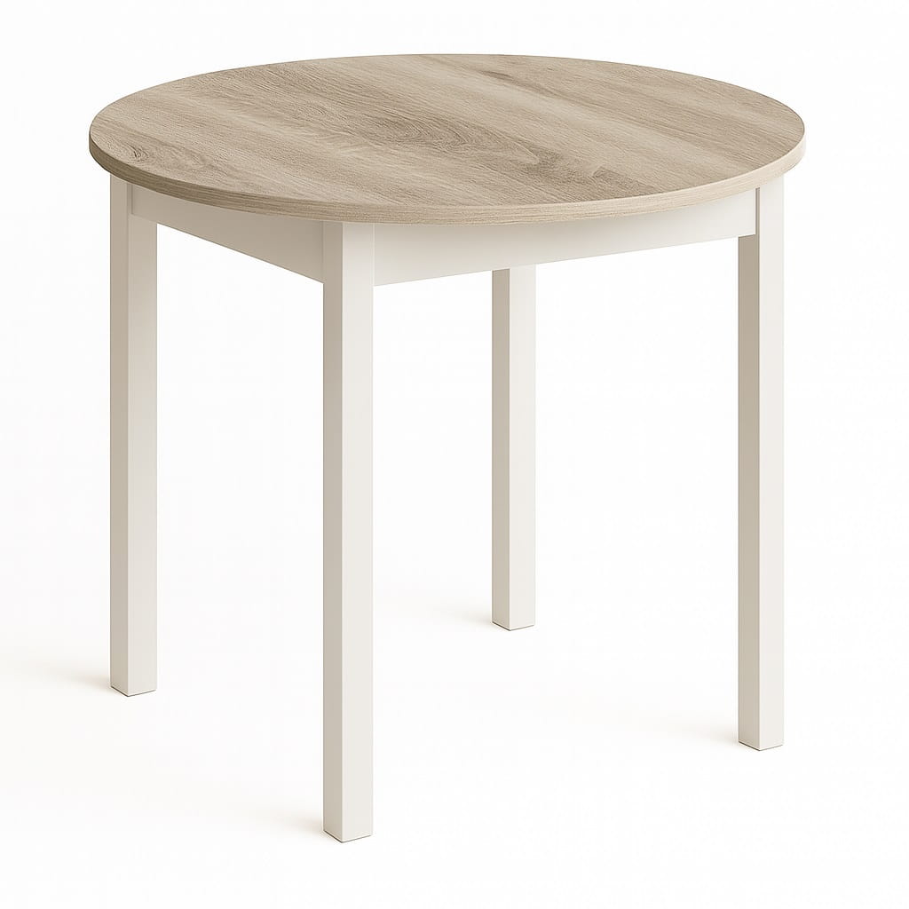 Funkcjonalny stół okrągły o średnicy blatu Ø 80cm. Posiada Blat oklejony PCV 18mm. Do wyboru dwa rodzaje nóg: 1.(Dre) drewniane lakierowane lub 2.(MDF) MDF laminowany. Mebel przeznaczony dla osób, które cenią sobie nowoczesny styl i elegancję.